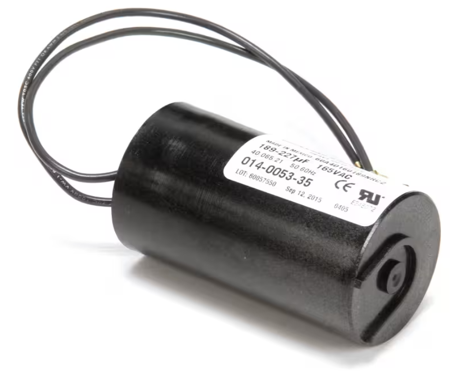 The Cres Cor 60A4D160189NRC2 Capacitor (part number 014-0053-35) is a replacement start capacitor designed to restore proper startup function to Cres Cor cooking and holding equipment. With a capacitance range of 189?227µF and compatibility with 50/60 Hz systems, this component is ideal for replacing worn or failed capacitors, ensuring your unit starts reliably under load.