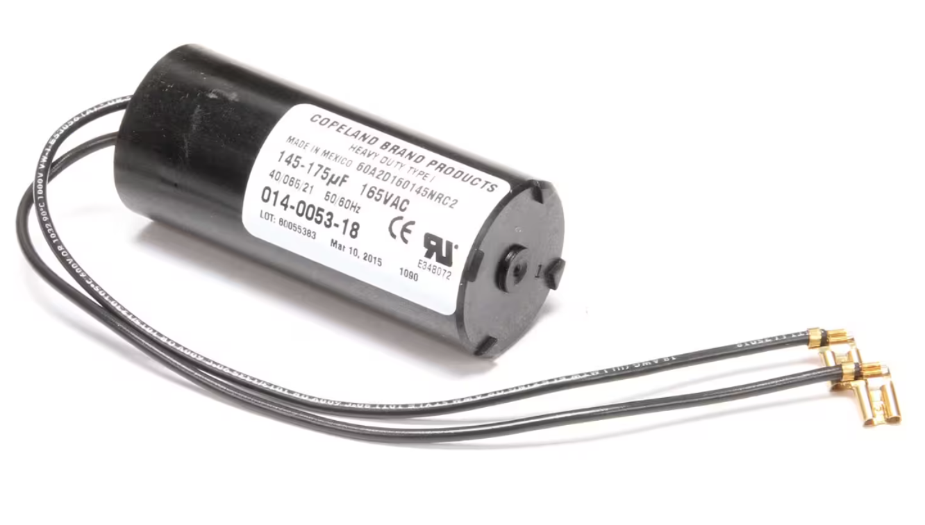 The Duke 60A2D160145NRC2 Start Capacitor (part number 014-0053-18) is a 165V, 145?175uF capacitor designed to deliver the necessary startup boost for motors in commercial kitchen equipment. With its high capacitance and reliable performance, this OEM-equivalent component is essential for ensuring smooth compressor or fan motor startups in a variety of Duke appliances.