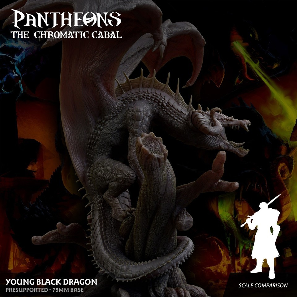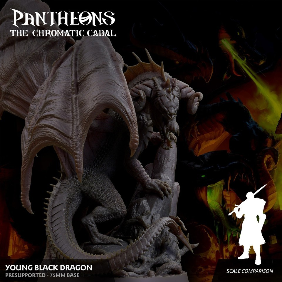 3D Printed Sordane Publishing Young Black Dragon Pantheons The Chromatic Cabal
