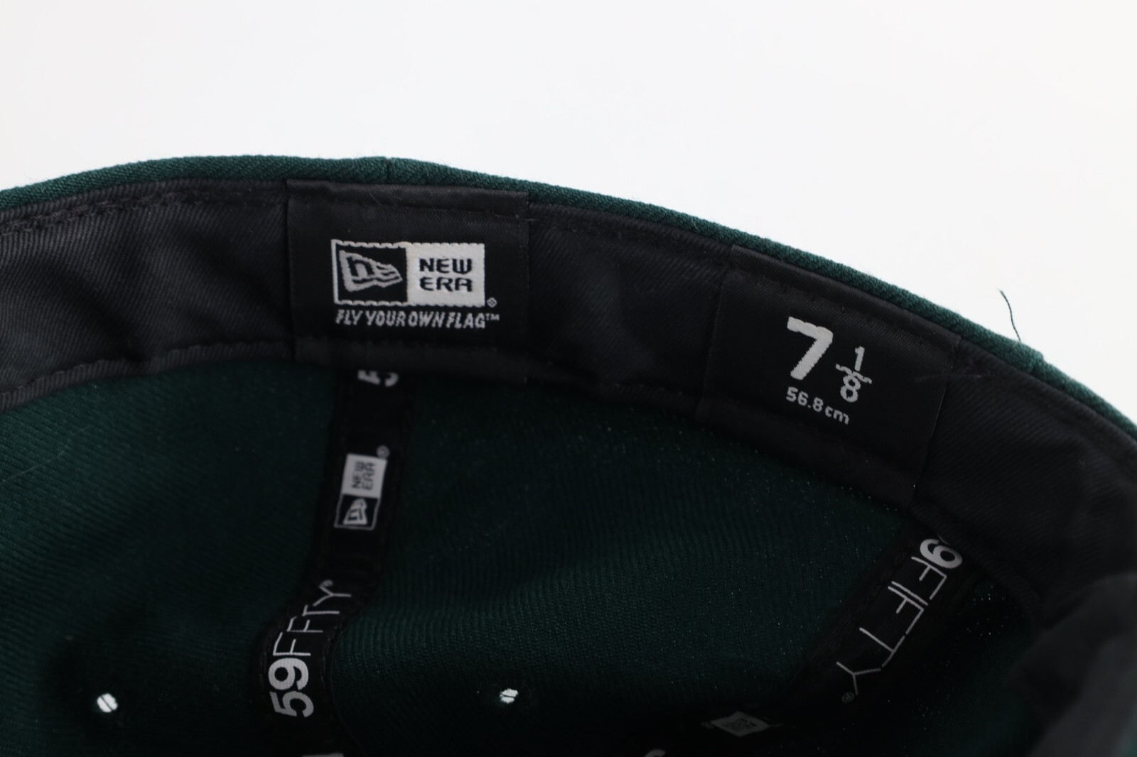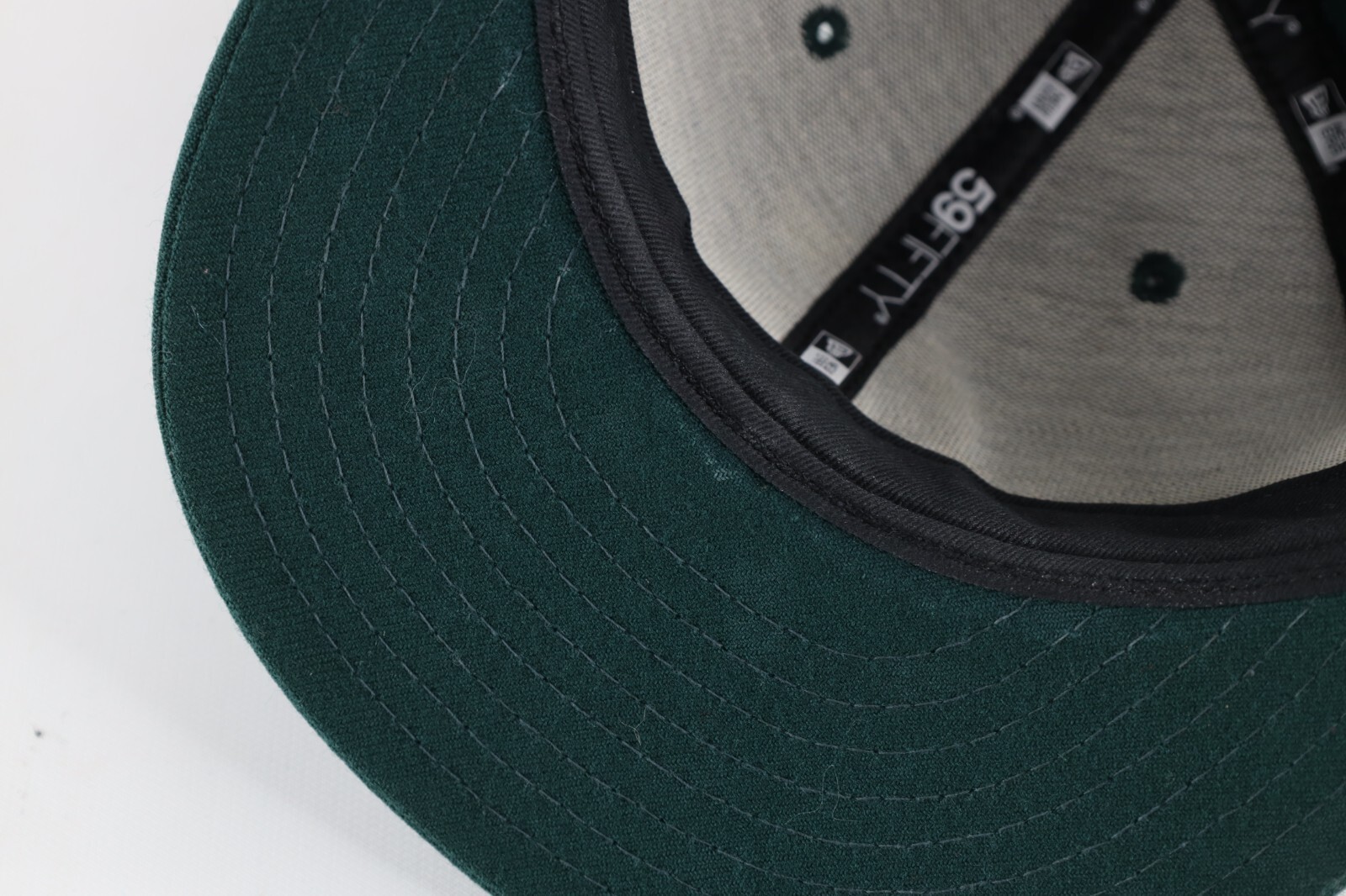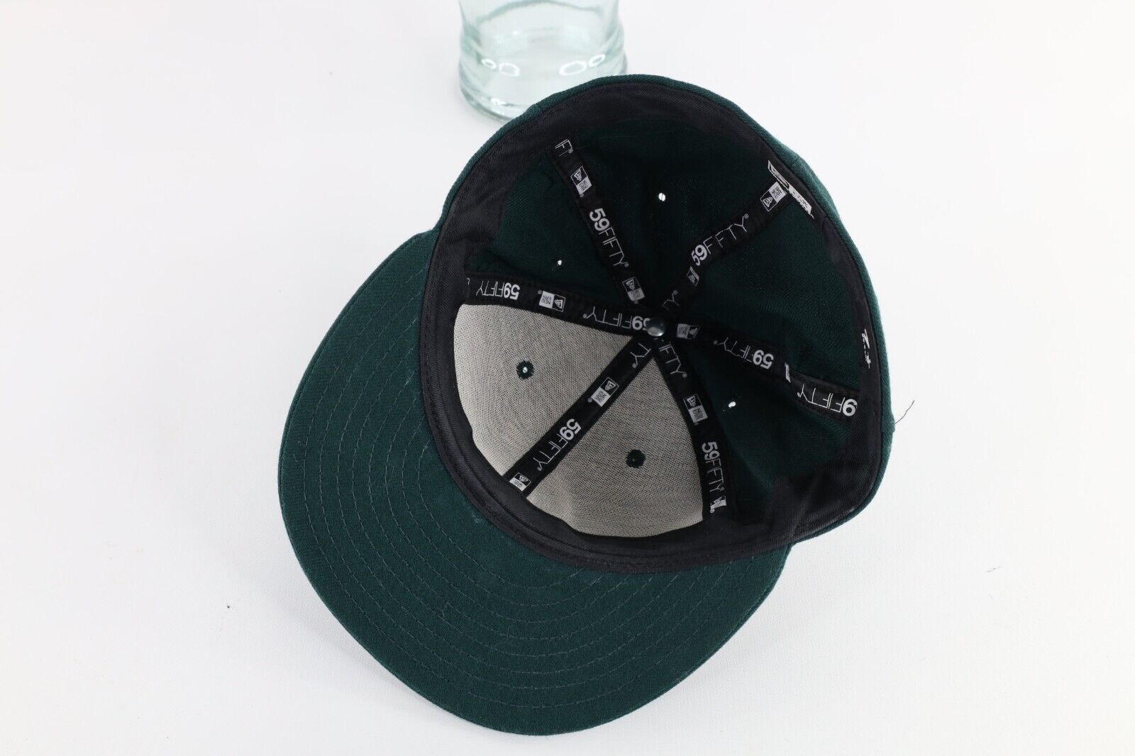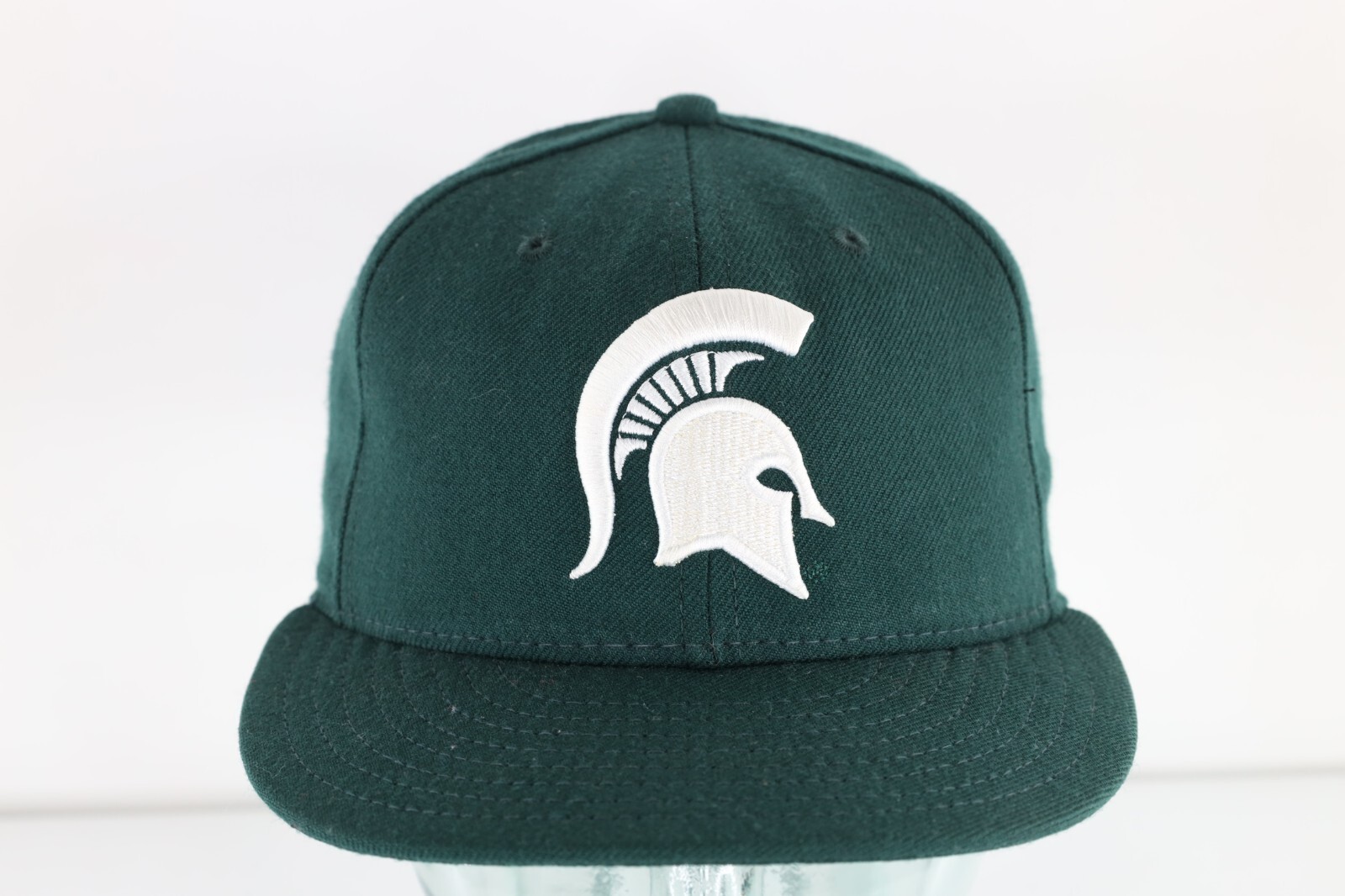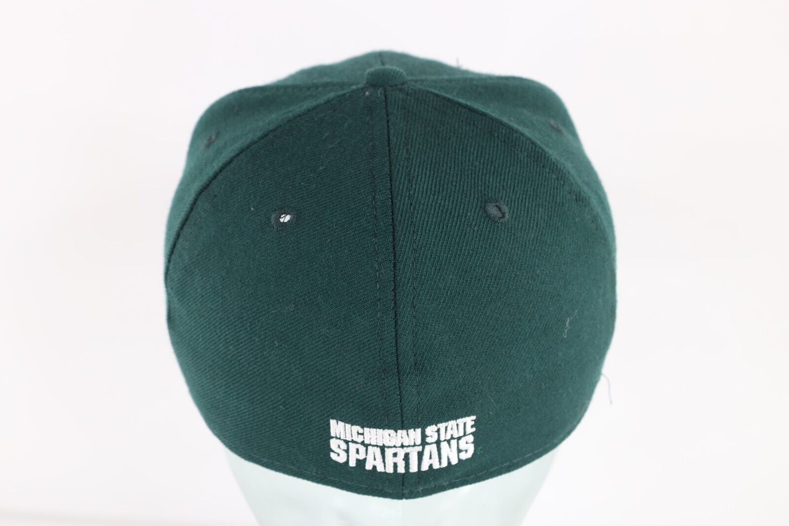 Vtg New Era Spell Out Michigan State University Fitted Hat Cap Green 7 1/8 USA
