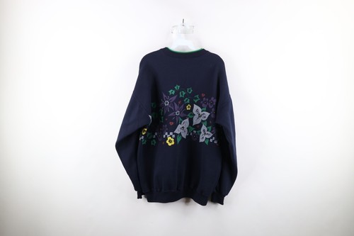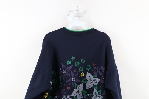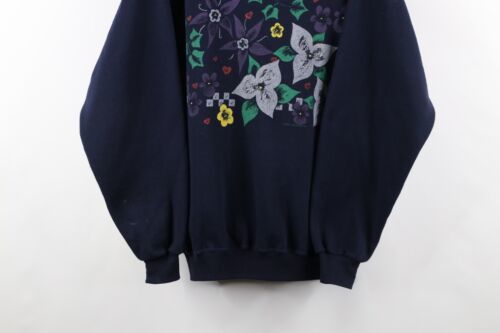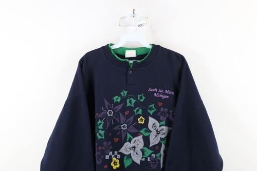 Vtg 90s Art Unlimited Womens Large Faded Michigan Flower Henley Sweatshirt USA