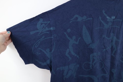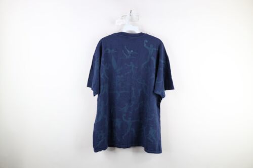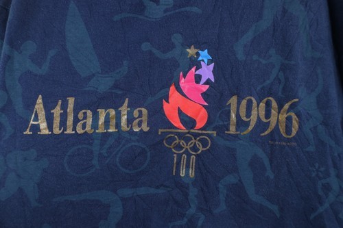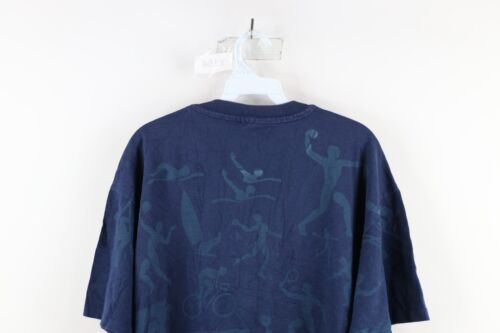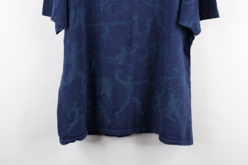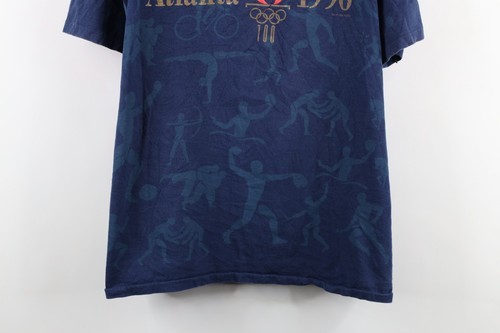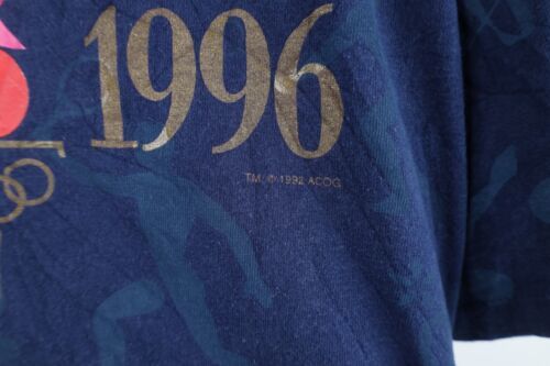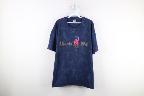 Vintage 90s Mens XL Faded All Over Print 1996 Atlanta Olympics T-Shirt Blue USA