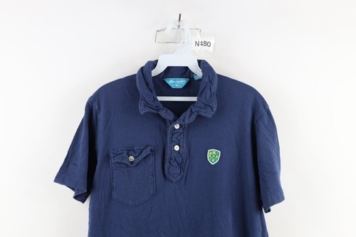 Vintage Abercrombie Fitch Mens XL Faded Ribbed Knit Crest Golf Polo Shirt Blue
