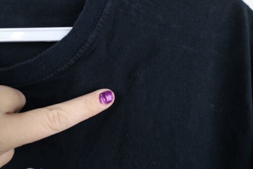 Pinhole left shoulder. Blemish front top. Color fade