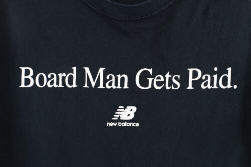 Vintage New Balance Mens Small Faded Spell Out Board Man Gets Paid T-Shirt Black