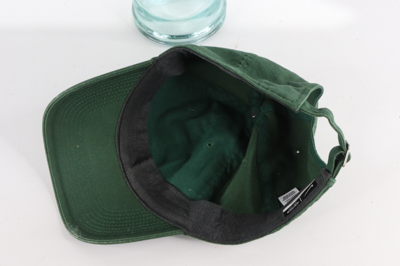 Bleach spot on the right side. Blemishes on the front and brim. Has color fade