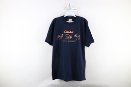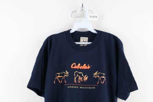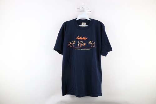 Vtg 90s Cabelas Mens Large Spell Out Moose Short Sleeve T-Shirt Navy Blue USA