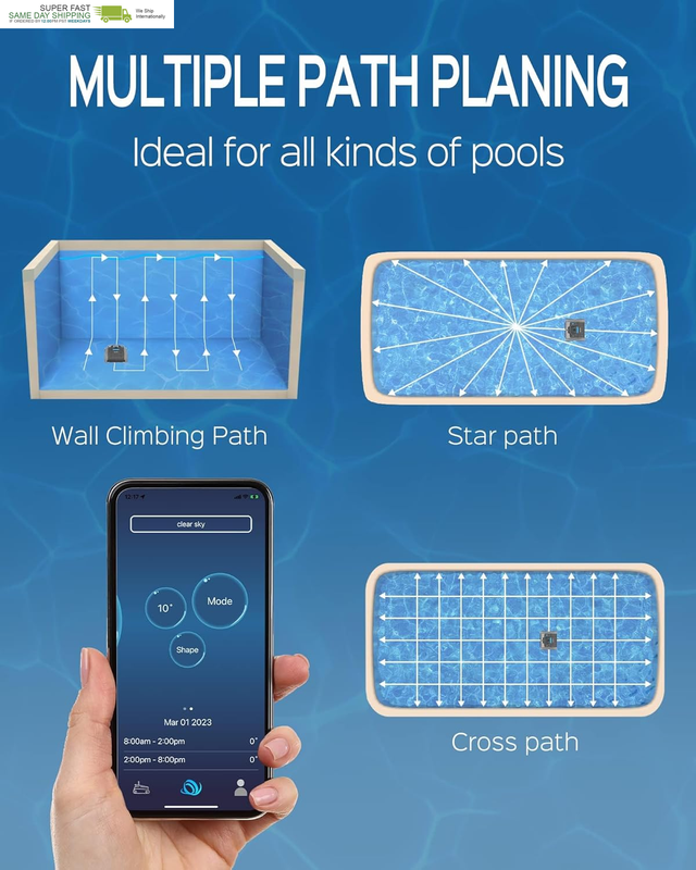 ?The Ultimate Pool Cleaner?Integrated suction, sweeping and scrubbing in one go. Control every element of Osprey 700 Max through the WYBOT app, including an intelligent gyroscope path planning function and setting the cleaning mode(star path/cross path/regular wall-climbing path). It's best to connect the robot and app on the shore and set the cleaning mode first before placing it in the pool.