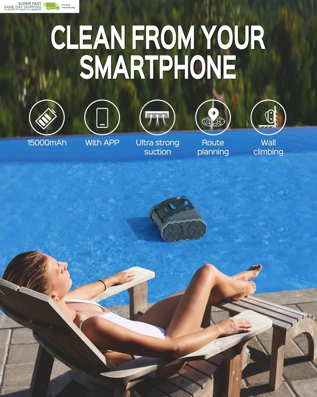 15000Mah Battery Lasts 180 Mins, Triple Motors Powerful Suction Pool Vacuum for