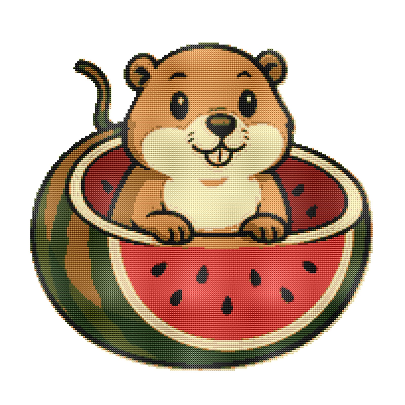 A happy gopher eats a watermelon - Cross Stitch Pattern - Instant Download