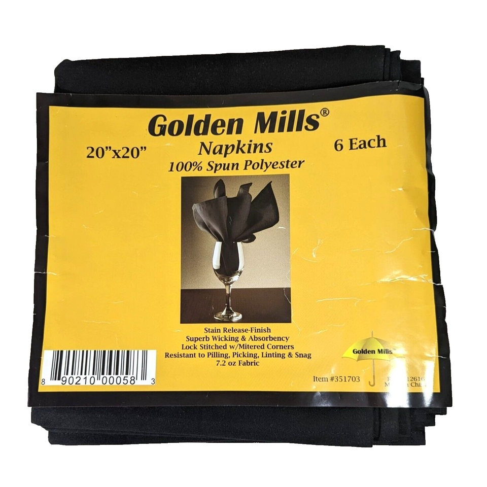 Golden Mills Black Napkins Spun Polyester 6pc Restaurant Quality 20 x 20-In NEW