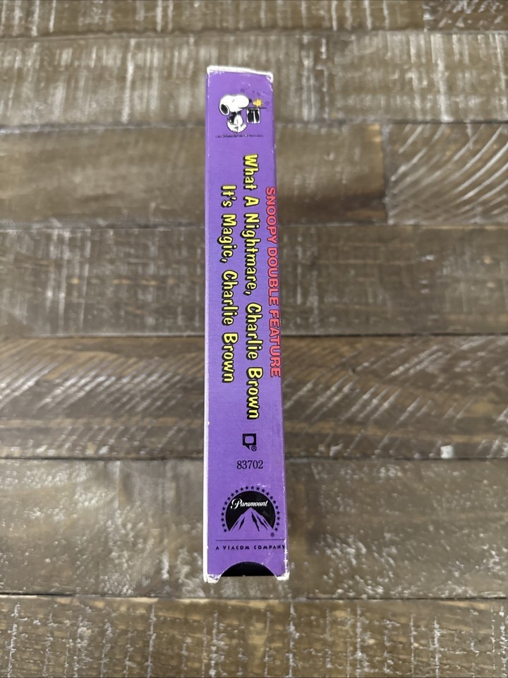 Immerse yourself in the charming world of Snoopy with this Double Feature VHS tape, featuring the delightful "Nightmare" and "It's Magic." Enjoy the timeless antics of Snoopy and his friends in a musical journey that is perfect for fans of animation and anime.