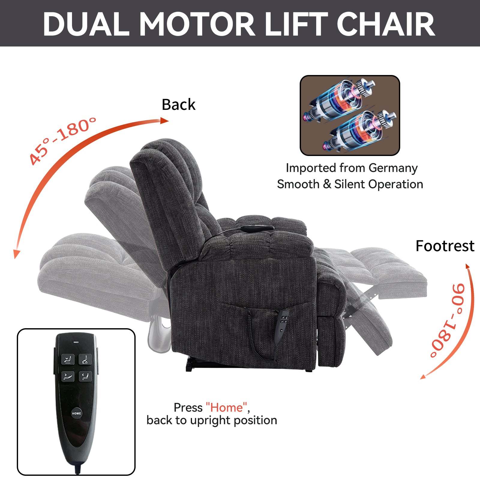 Grey Dual Motor Electric Power Lift Recliner w/Heat Massage, 350LBS