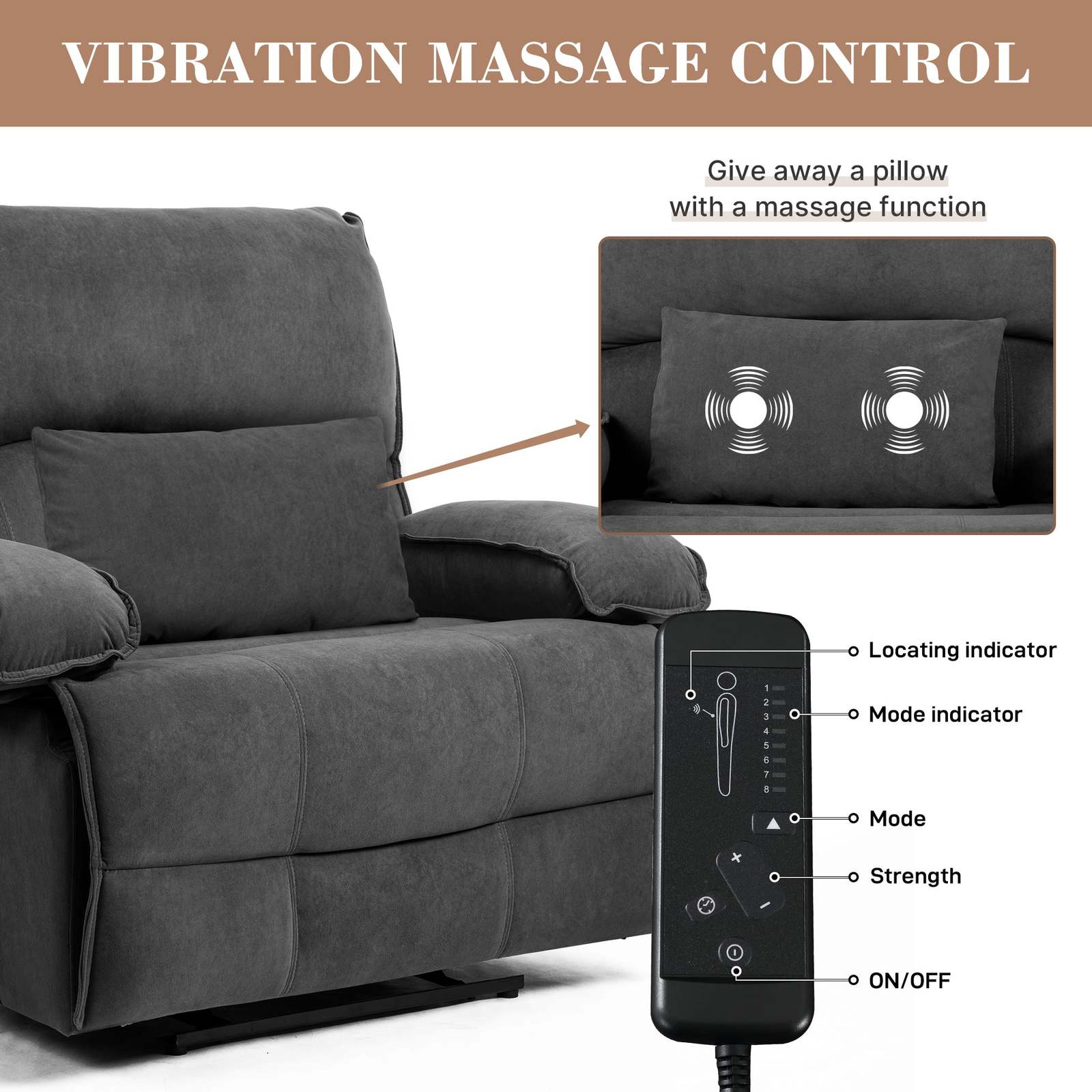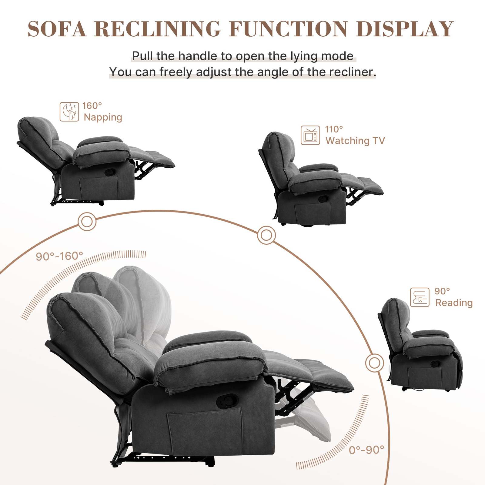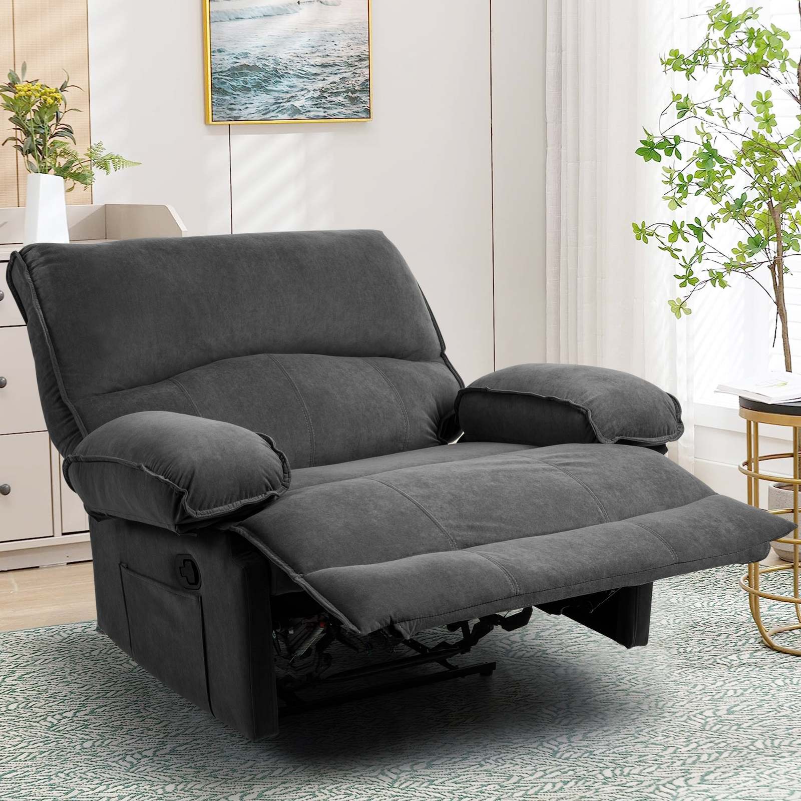 Oversized Grey Velvet Manual Recliner Chair for Living Room