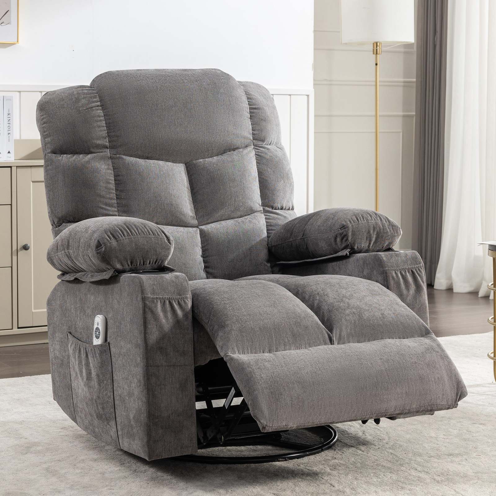 Oversized Massage Rocker Recliner Chair w/ Heat, USB & Cup Holders