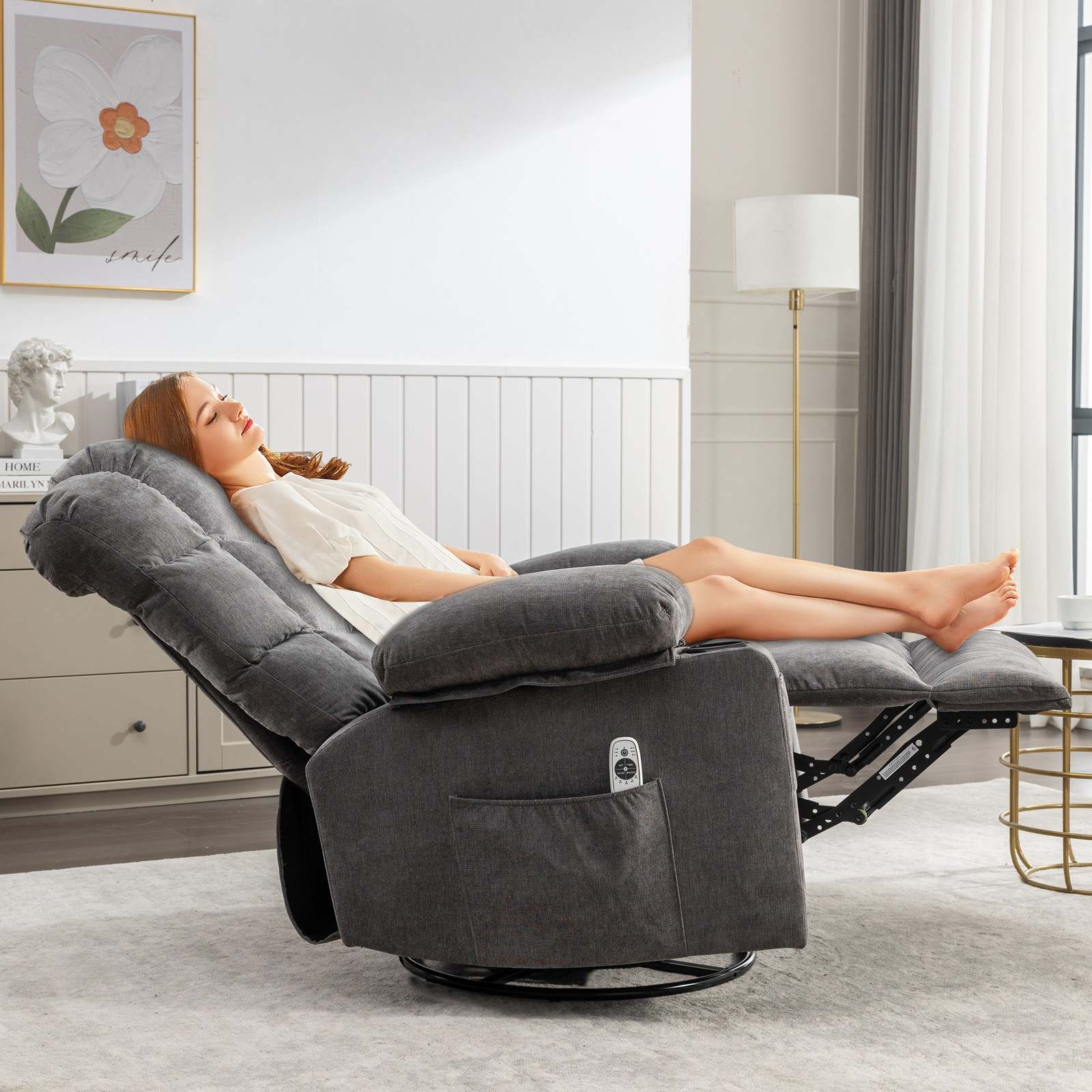 ?ROCKING RECLINING?Just pull handle at side you can recline and stretch your body(max 150 degree), Also 30 degree rocking function to help you dispel stress and fatigue(No lift function)