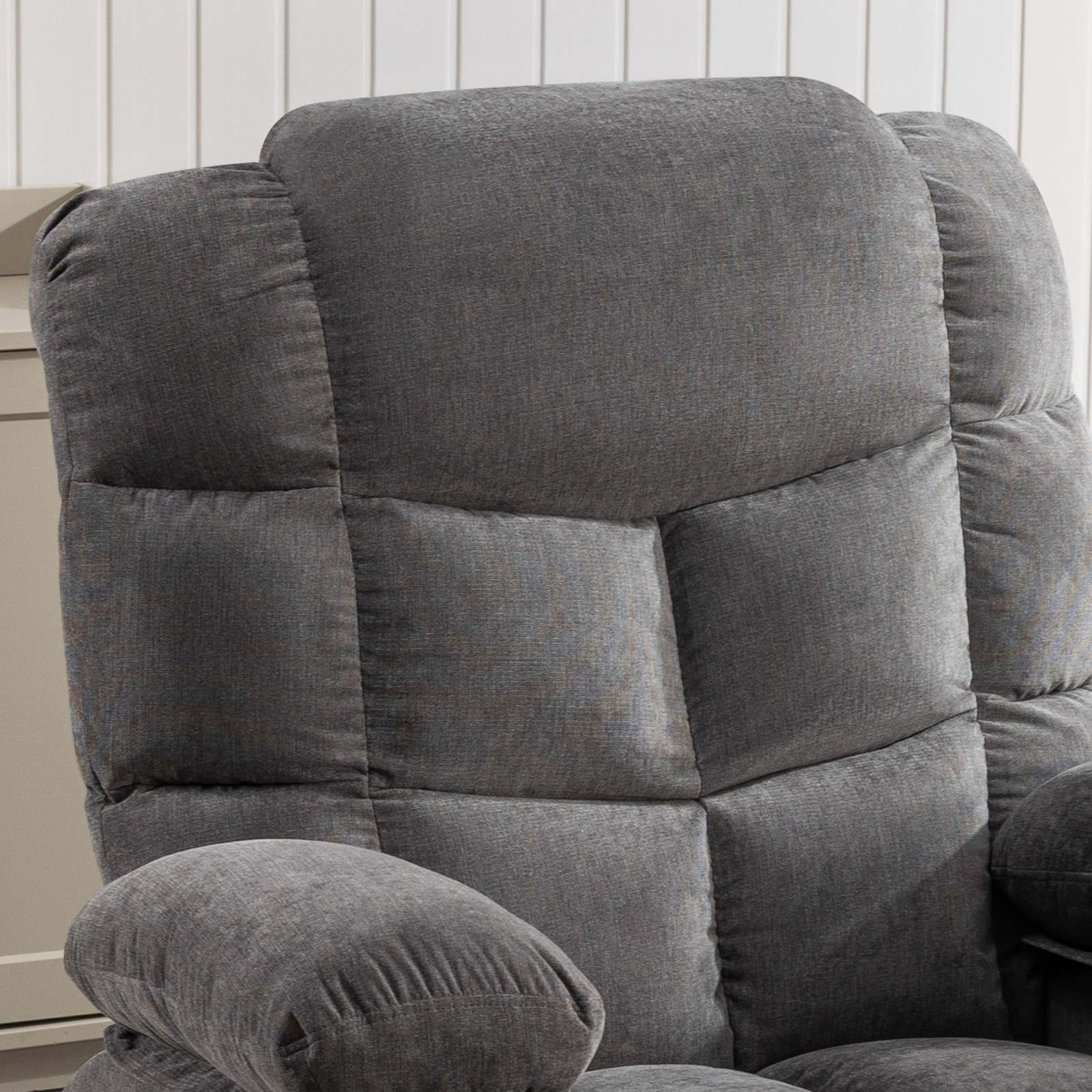 ?VIBRATION MASSAGE HEATING? This massage recliner chair has 8 massage points and 2 different massage intensities can meet your different massage needs. The four areas of the massage are distributed in the calves, thighs, waist and shoulders. You can freely choose the intensity and position of the massage. Waist heating with massage function point which makes Allows you to promote blood circulation while massaging.