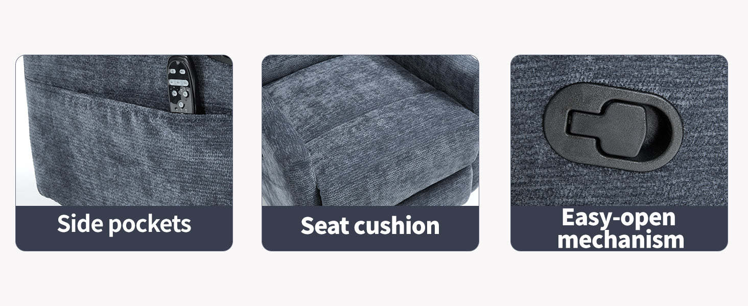 Place of Origin China Main Color Blue Main Material Metal Wood Filler Fiber Foam and Polyester Fiber Pad Product Style American Design Use Case Primary Living Space Wood Type Pine Wood Tone Nature Chair Seat Recliner Operating Me Handle Upholstery Material Chenille Arm Style Square Arms Back Style Cushion Back Seat Plushness Medium-Firm Abrasion Rating Heavy Duty Dangerous Goods #dangerFlag#