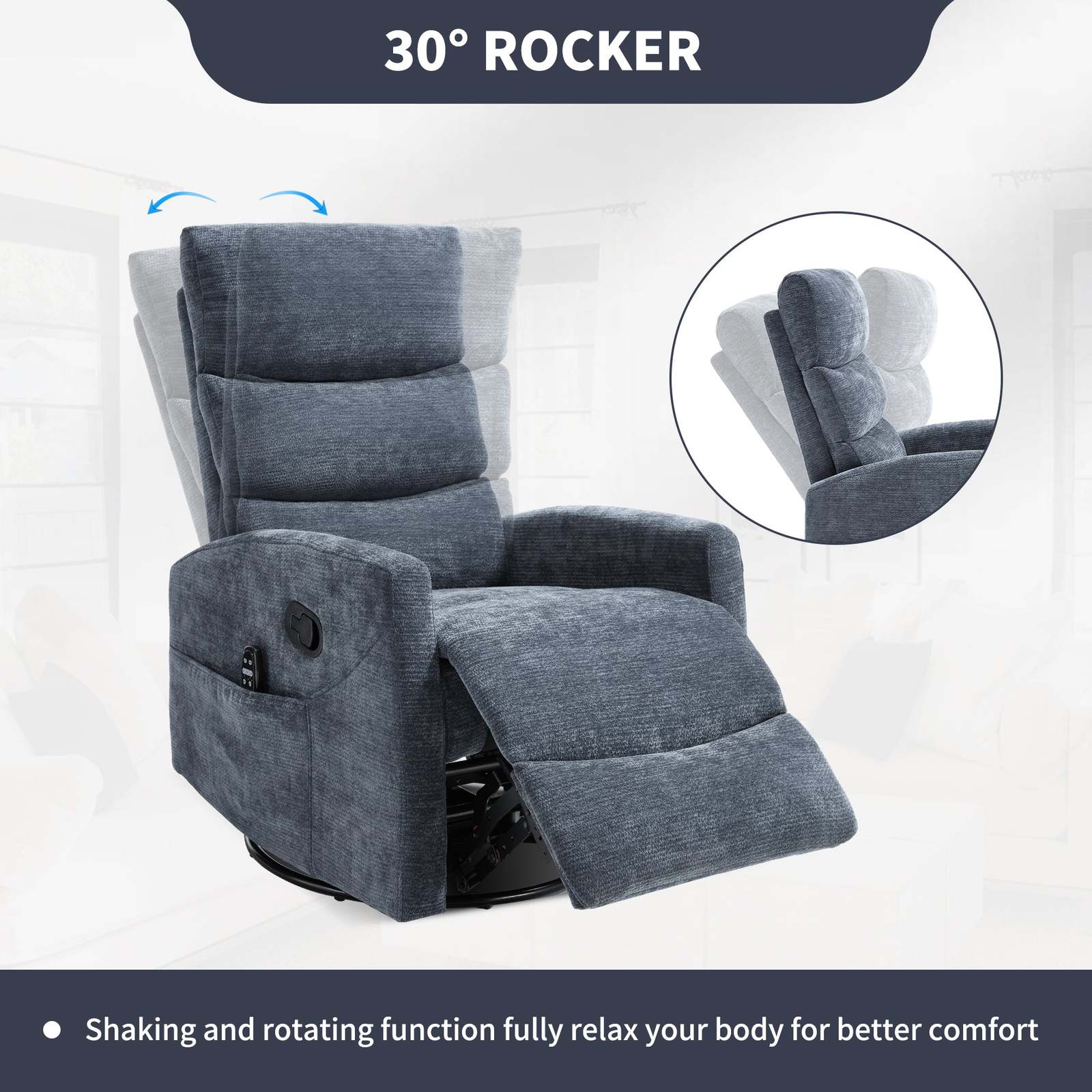 Blue Fabric Heat Massage Manual Recliner Rocker Swivel Chair