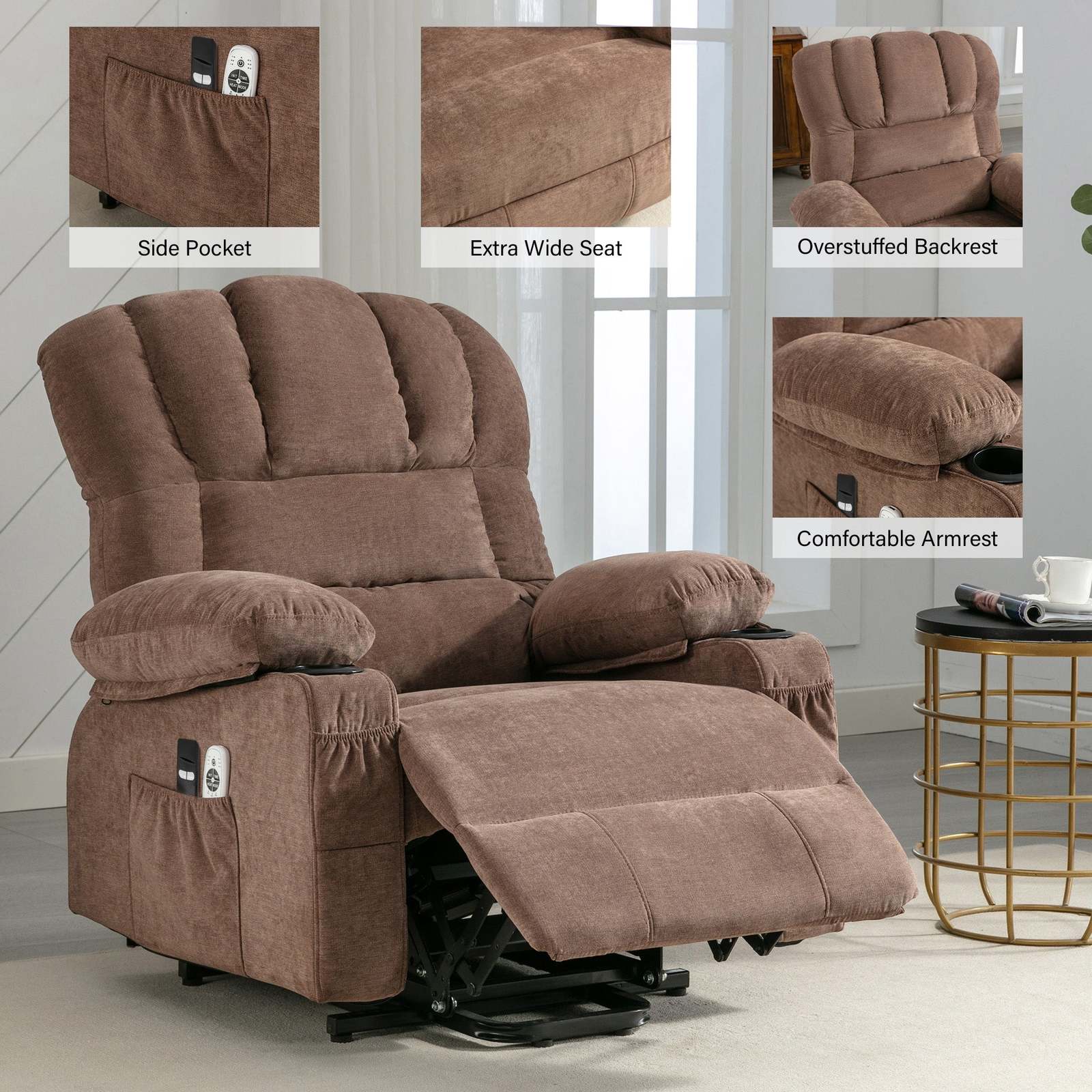 Brown Electric Power Lift Recliner for Elderly - Heat, Massage, USB