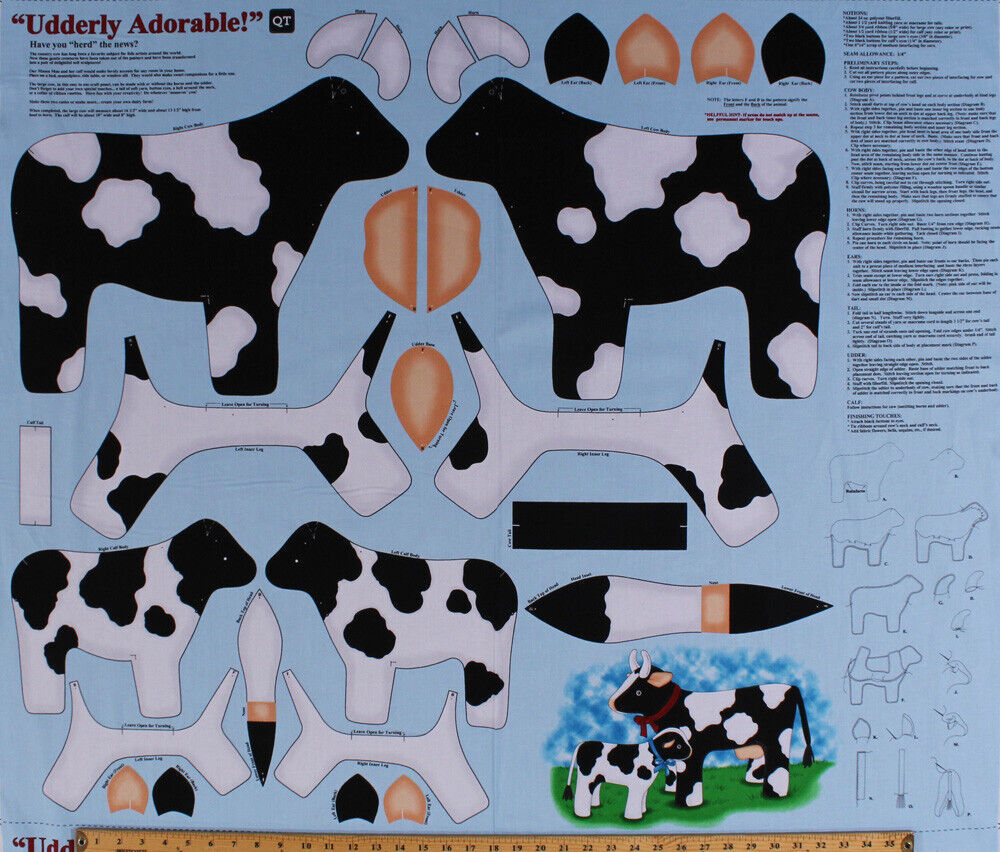 35" X 44" Panel Cows Calf Stuffed Animal Toys Kids Cotton Fabric Panel D475.37