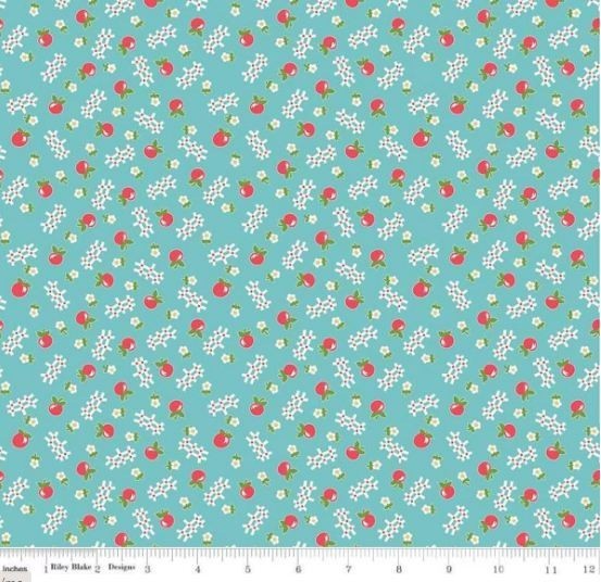 Cotton Farm Girl Vintage by Lori Holt for Riley Blake Designs Bee in My Bonnet Apples Blue Riley Blake Cotton Fabric Print by the Yard (C7873-COTTAGE)