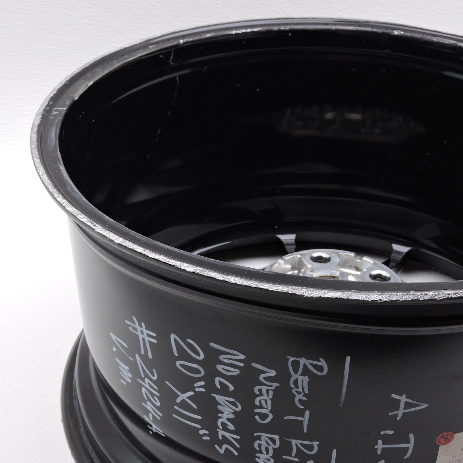 Item: 20" Gloss Black Ultra Lightweight Rim (20x11 ET37) - Wheel is bent, and will need repair - Used - Visible cosmetic blemishes/ scuffs/ curb rash/ bent as shown - No cracks - please view