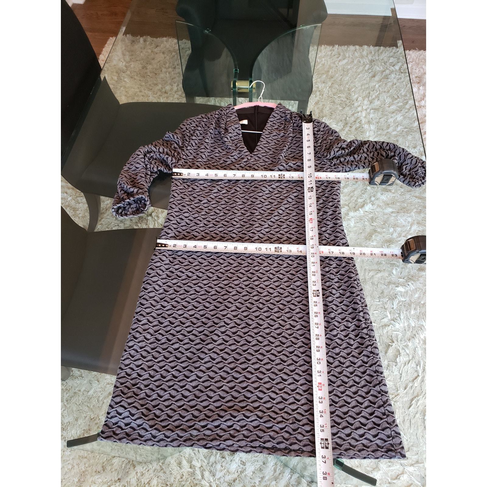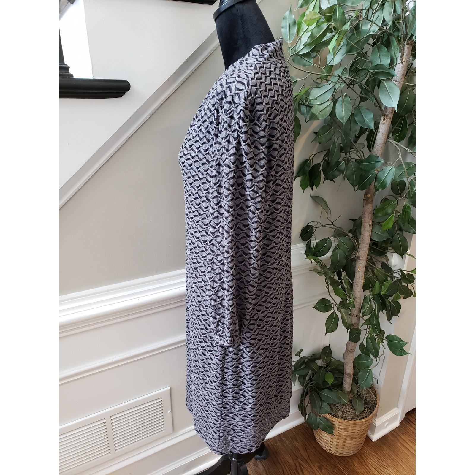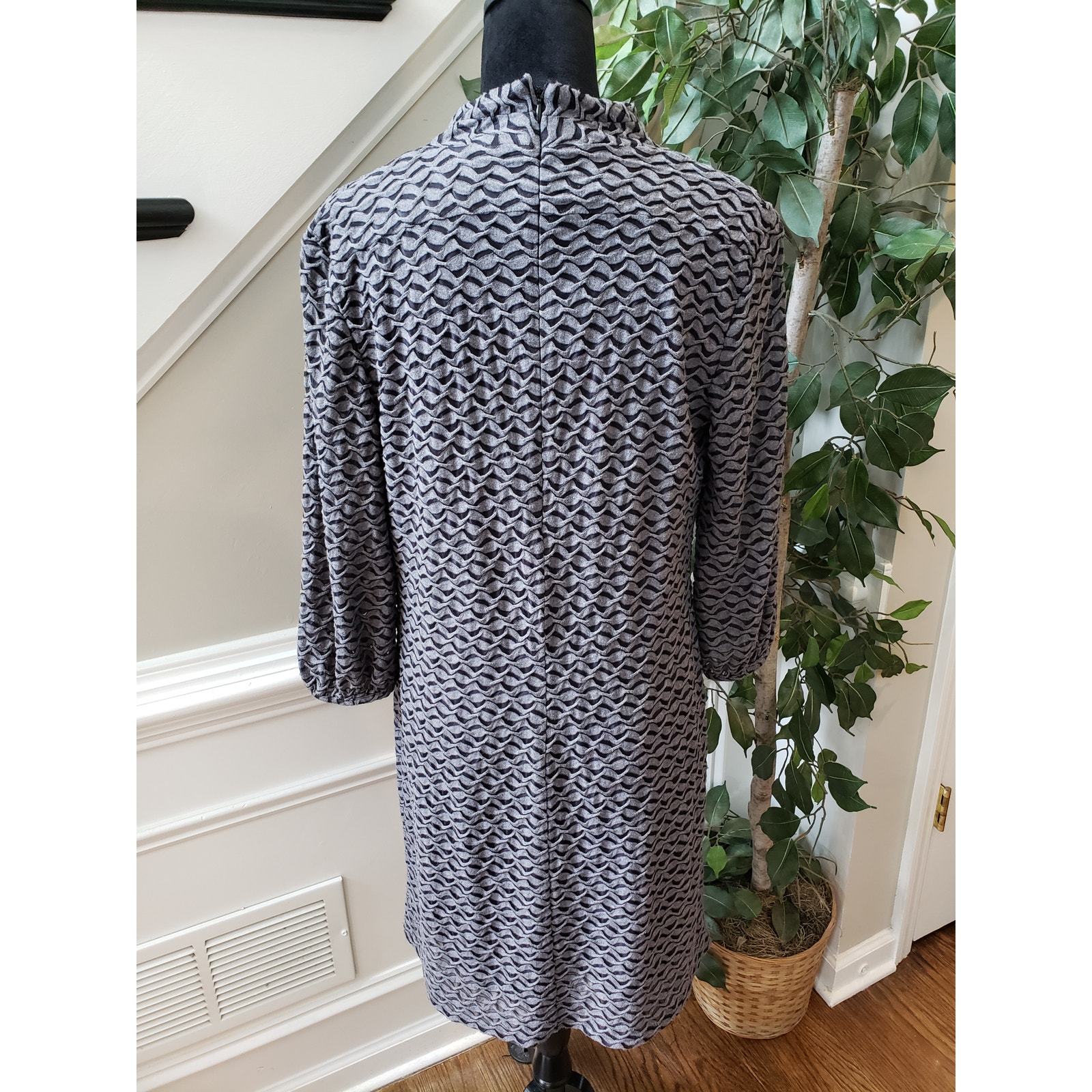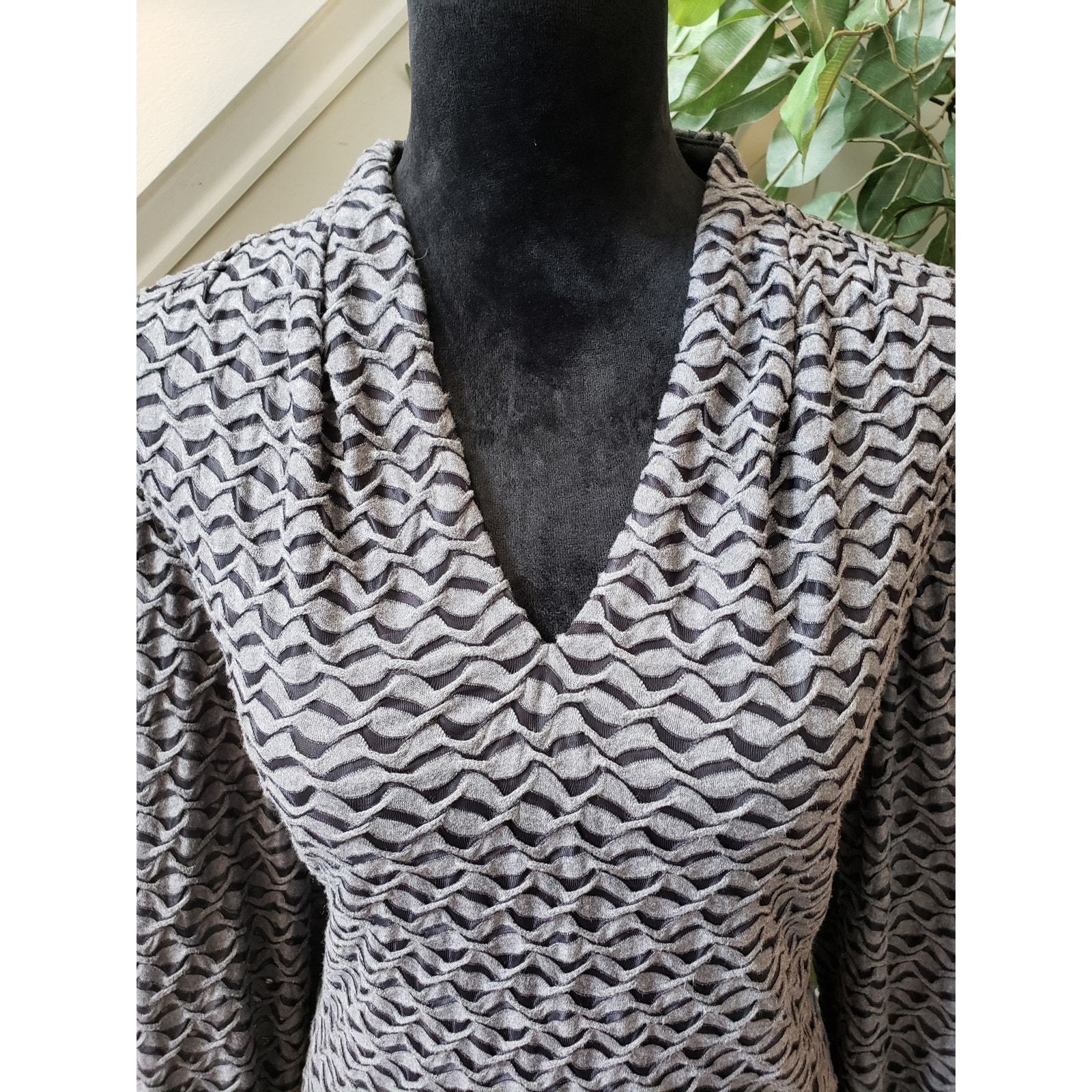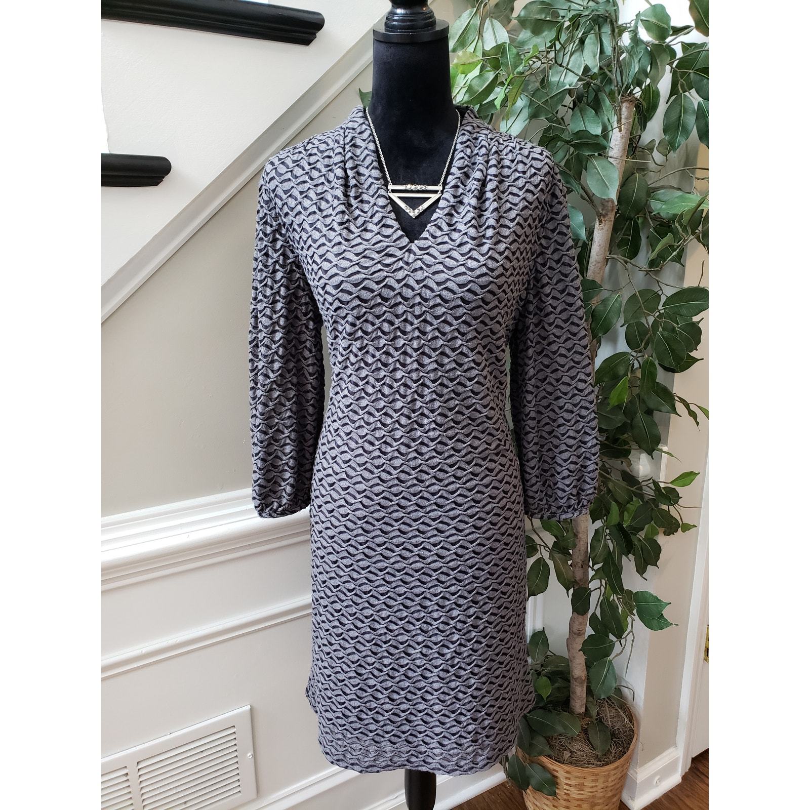Evan Picone Sheath Dress Women's Size 12 Gray Black 3/4 Sleeve V Neck Pullover