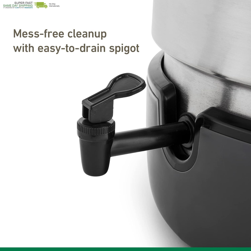 Includes comfortable handle grips, easy-to-drain spigot, and detachable base with dishwasher-safe components; pot is hand-wash only