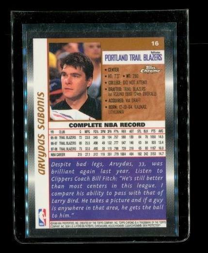 1998-99 Topps Chrome Refractor Arvydas Sabonis #16 HOF Portland Trailblazers. Raw and ungraded. Smoke and pet free.