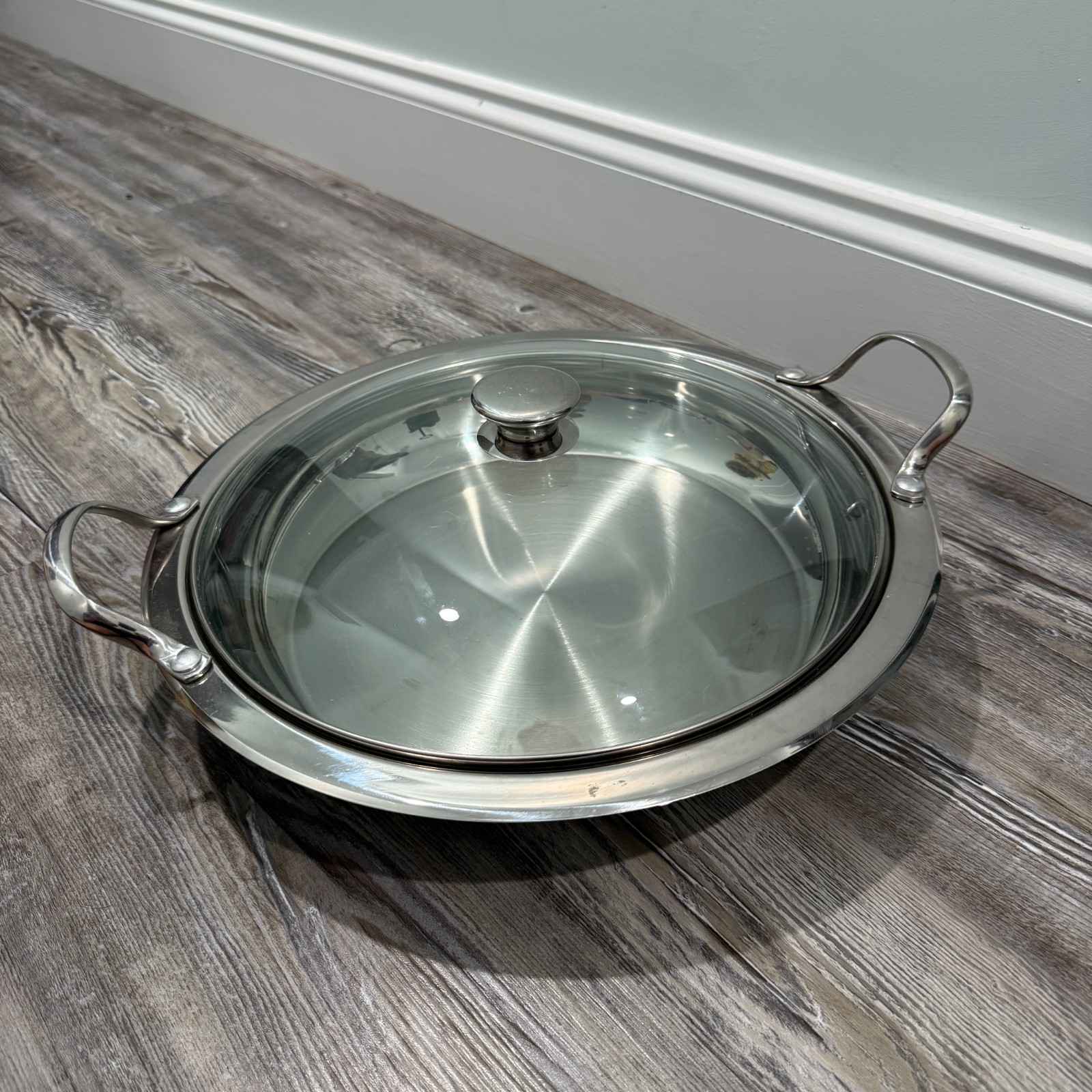 Up for sale is a good pre-owned condition Wolfgang Puck Bistro Collection 13 Inch Buffet Server, made from stainless steel. This is from my husband's personal collection and he is downsizing. There are no flaws other than normal signs of wear and tear.