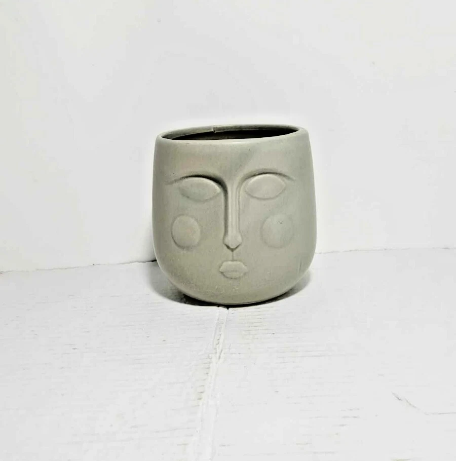 This listing is for Face Planter Pot Head Gray Ceramic Succulent Flower Indoor Outdoor Garden Home