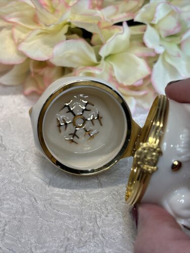 The box is part of the Lenox Treasures collection and is the perfect gift for teens, adults, and girls. It is made in China and is the first issue of its kind. The box comes with a hinged lid and is ideal for storing small trinkets or jewelry. With its unique design and high-quality material, this Lenox Treasures trinket box is a must-have for any collector.
