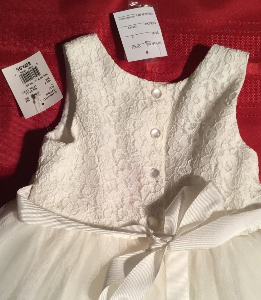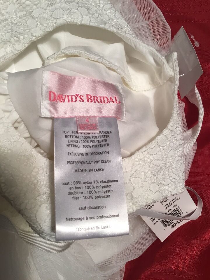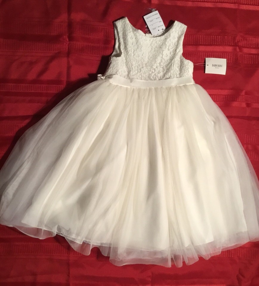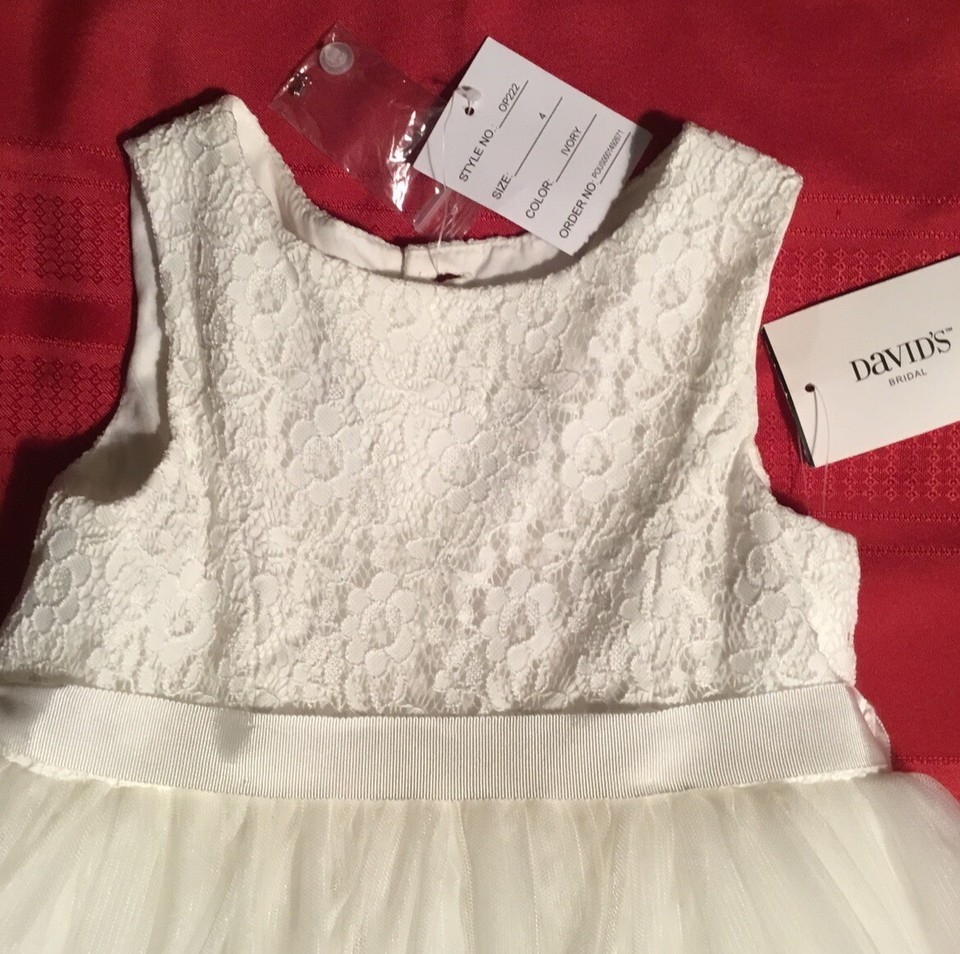 David's Bridal Flower Girl Ivory Sleeveless Dress Lace Bodice Size 4 New W/T