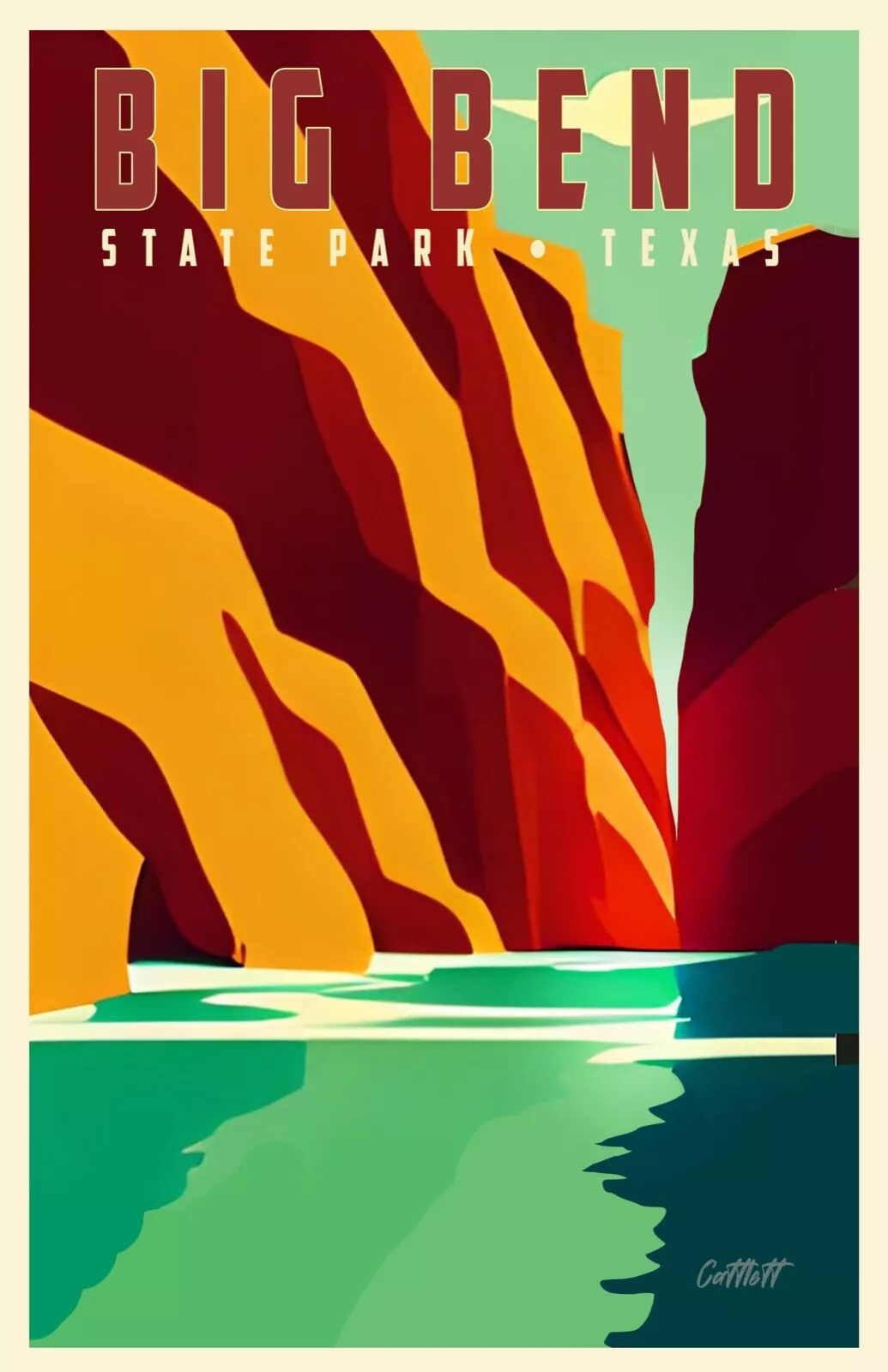 This listing is for Big Bend National Park Texas Vintage Travel Poster 11x17 ((Hand Signed))