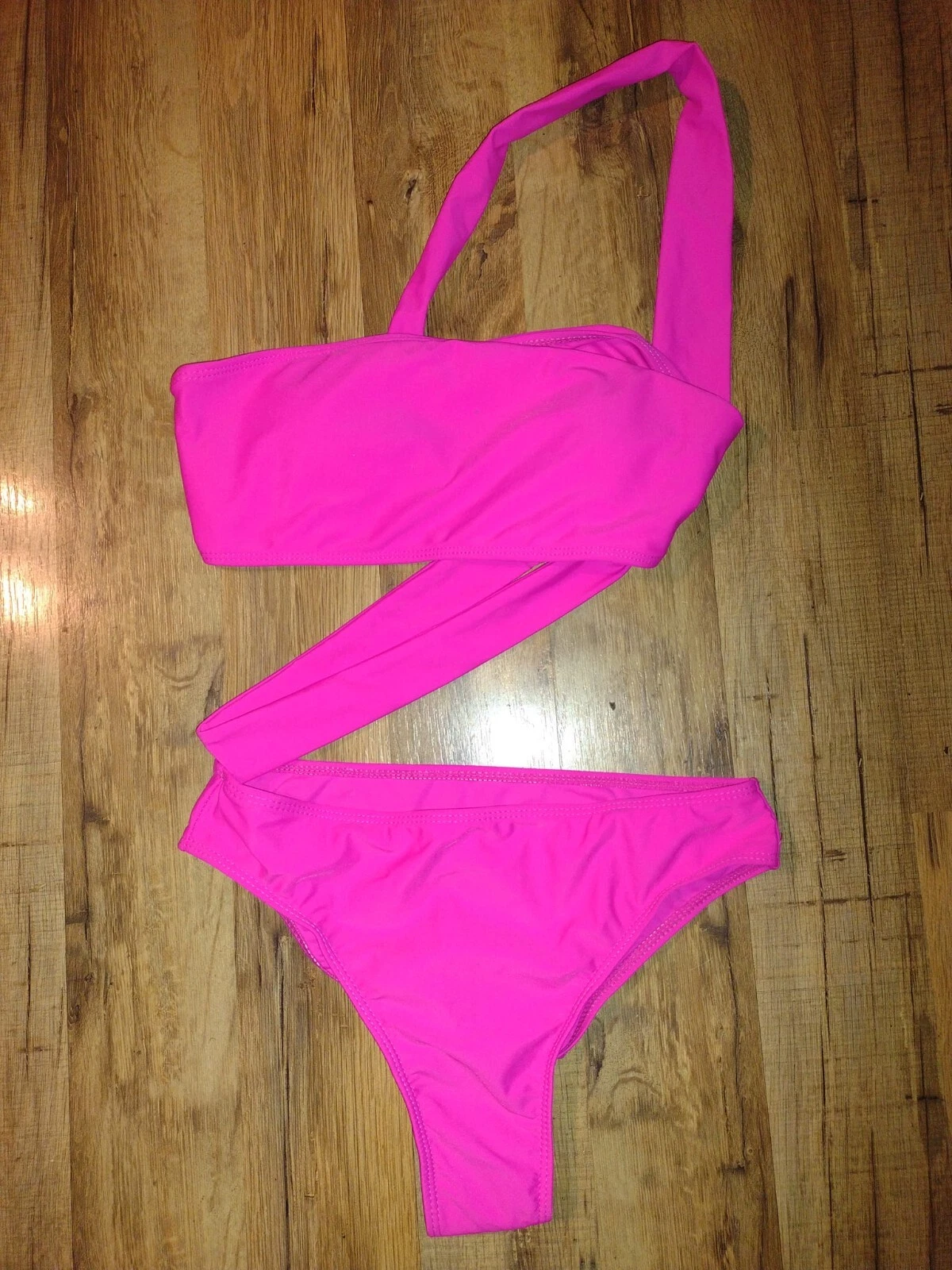 This listing is for New M Women One Shoulder High Waisted Bikini Tie High Pink Swimsuit Bathing Suit