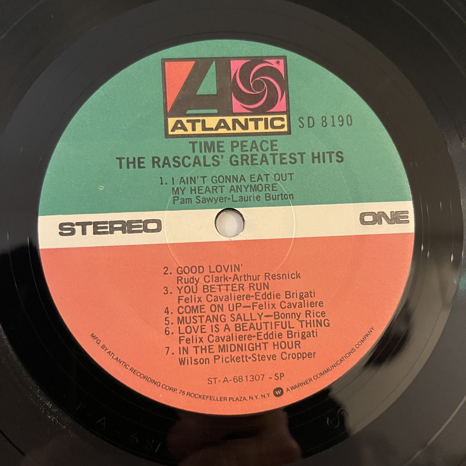 Time Peace: The Rascals Greatest Hits Vinyl LP Atlantic SD 8190 Young Good Lovin