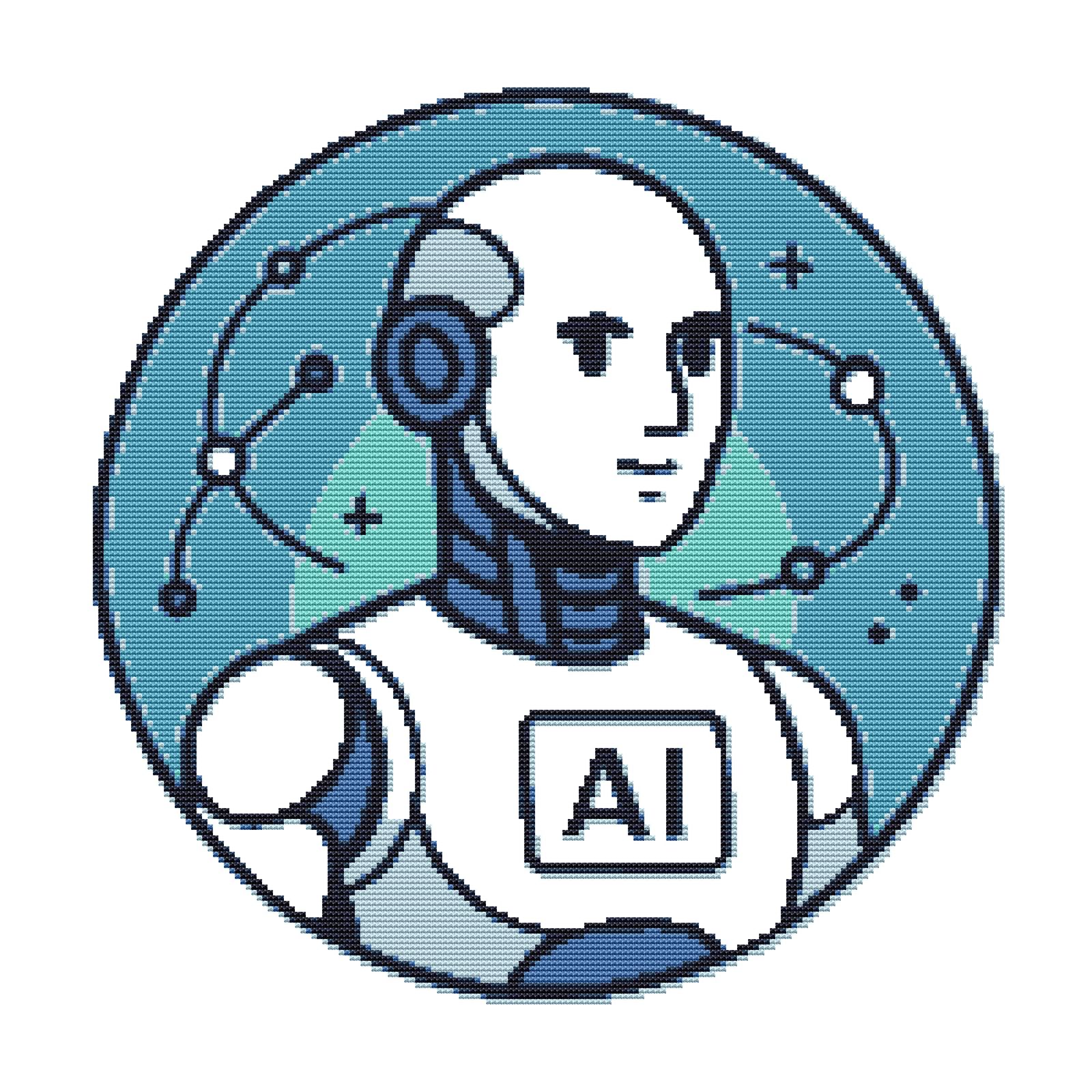 Robot on a blue background - Cross Stitch Pattern PDF - Instant Download