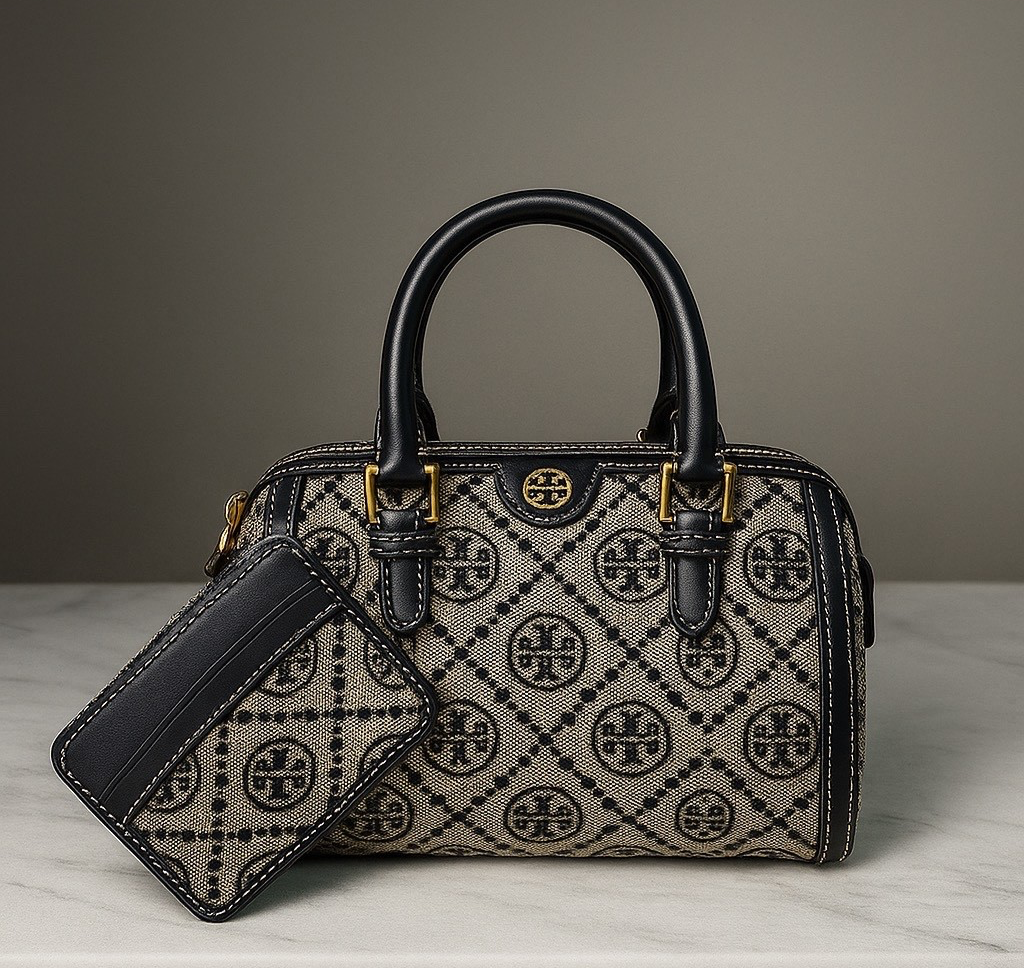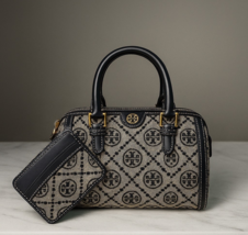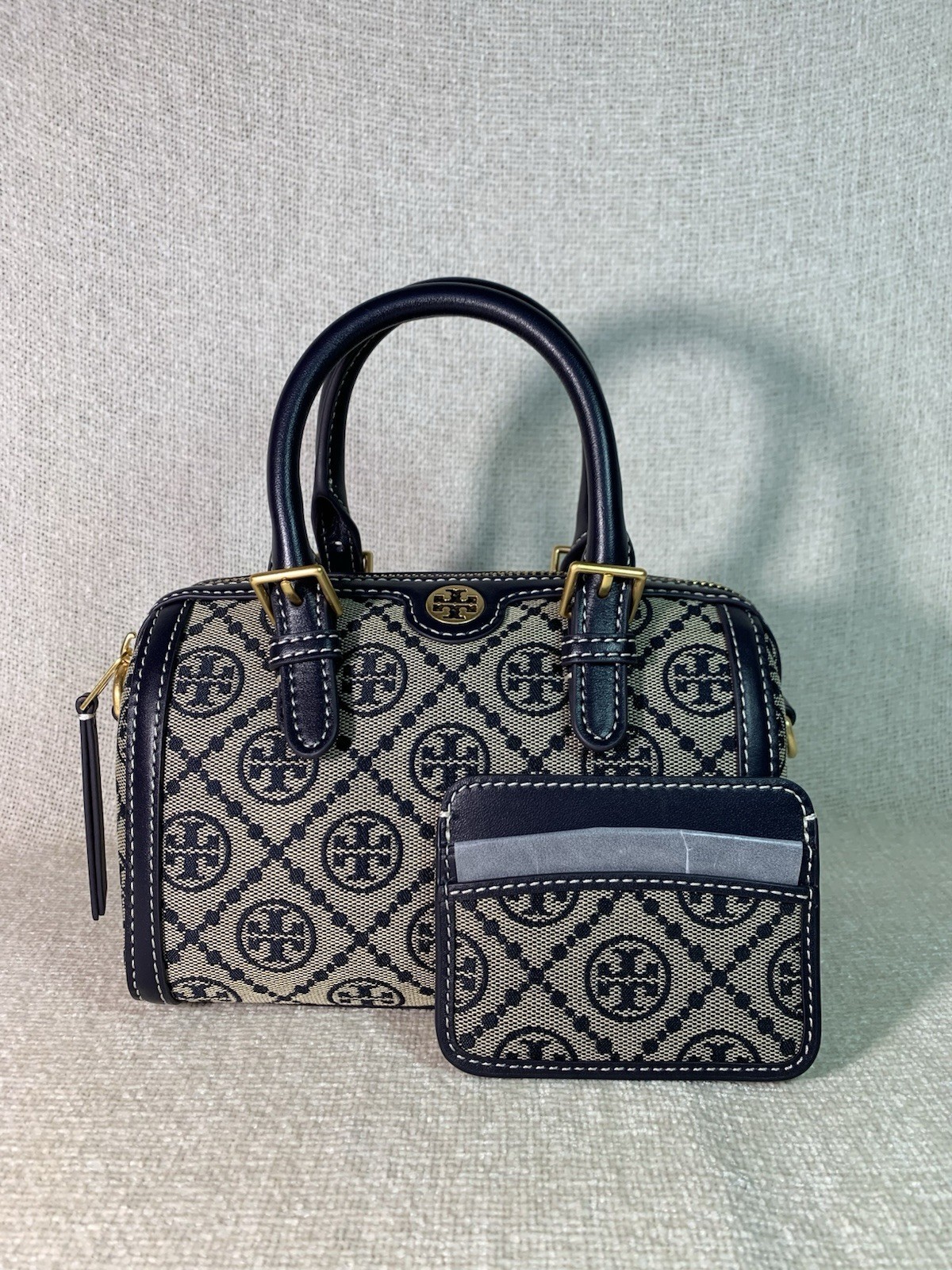 Tory Burch Tory Navy T Monogram Jacquard MINI Barrel Bag + Card Case - $476