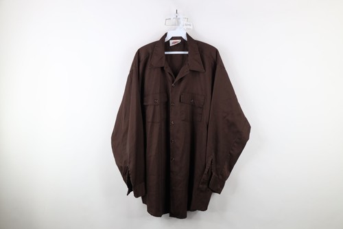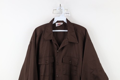 Vintage 90s Dickies Mens 18 35 Faded Workwear Mechanic Button Shirt Brown USA