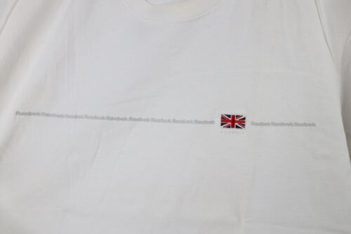 Vintage 90s Reebok Mens Medium Spell Out Classic Flag Short Sleeve T-Shirt White