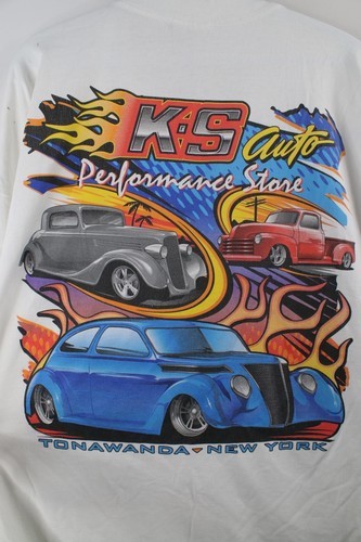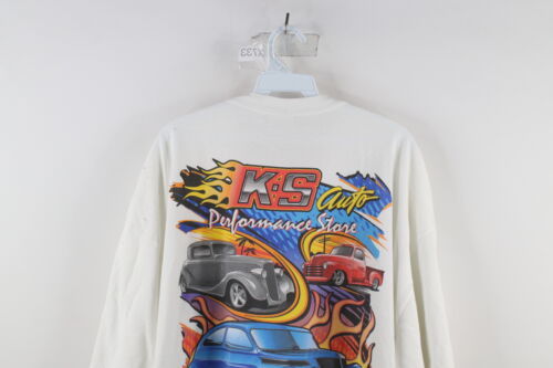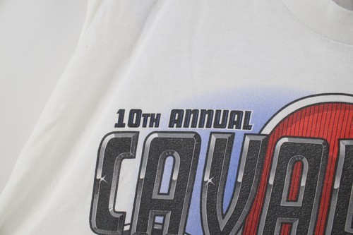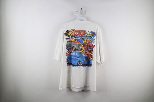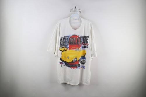 Vintage Y2K 2003 Mens 2XL Distressed Cavalcade of Cars Fire Flames T-Shirt White