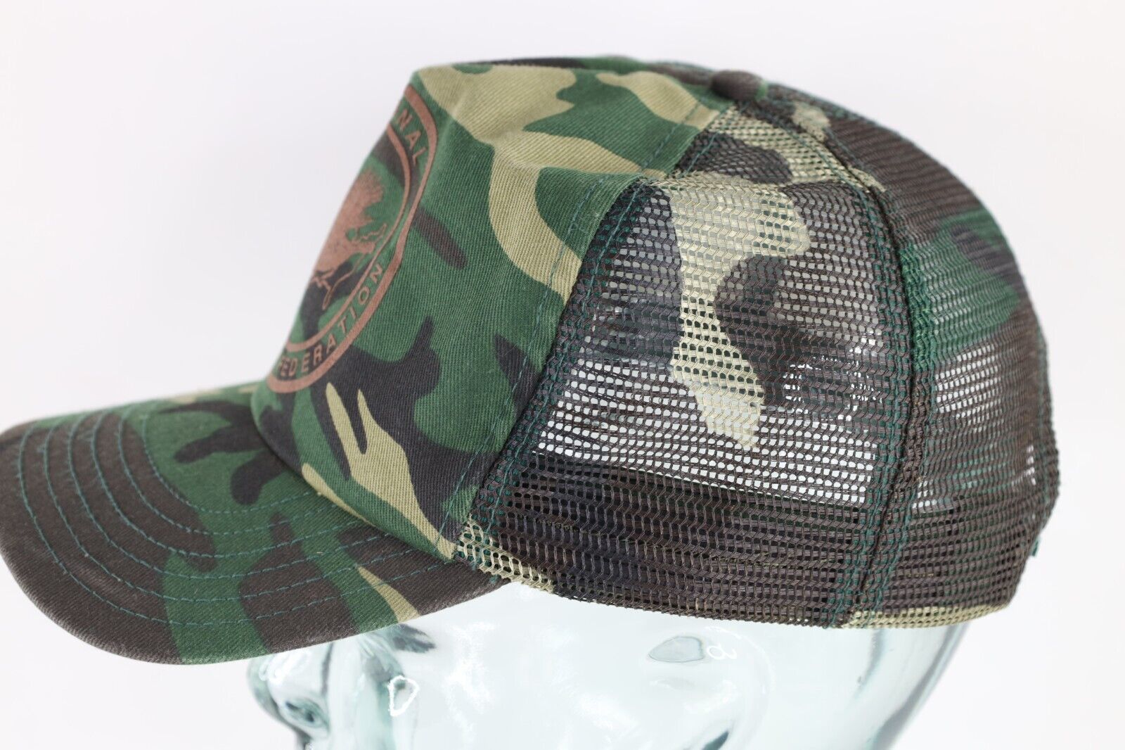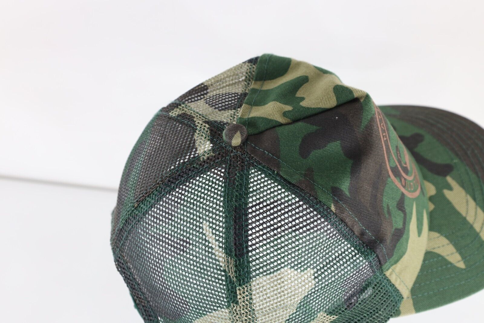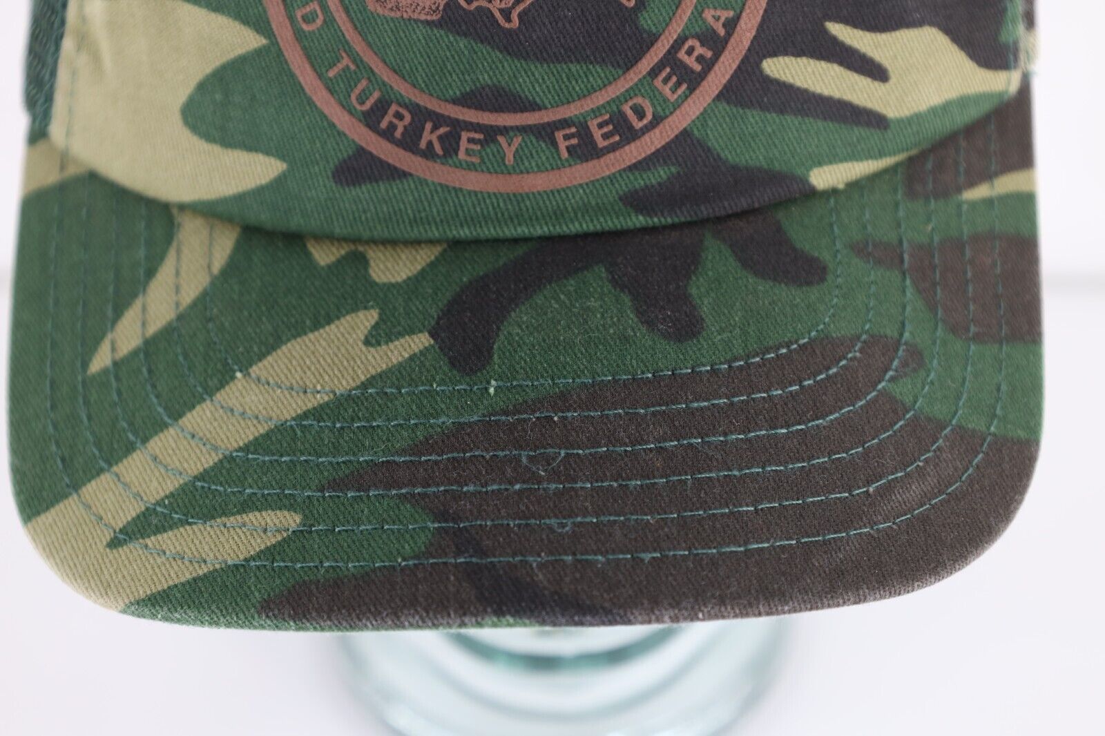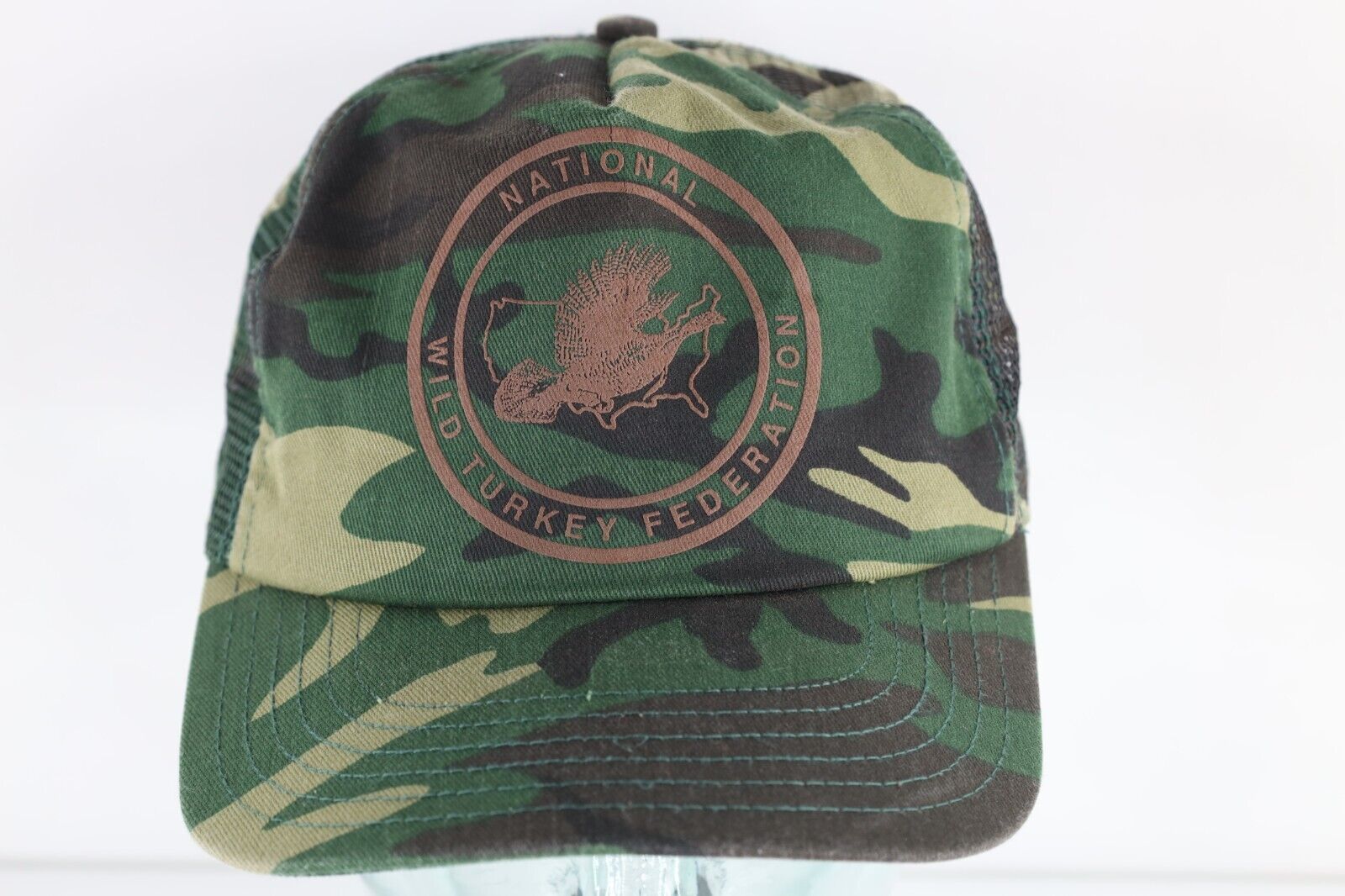 Vtg 70s 80s Spell Out Camouflage National Wild Turkey Federation Trucker Hat USA