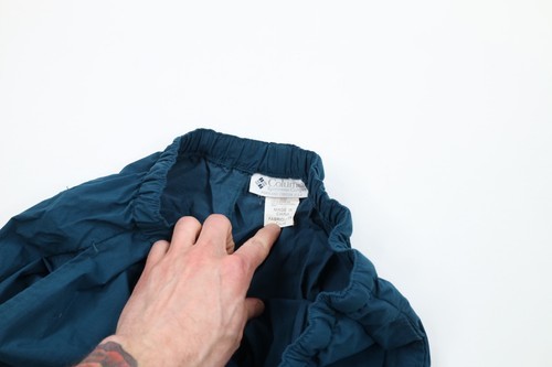 Vintage 90s Columbia Mens Small Spell Out Belted Cuffed Nylon Joggers Pants Blue