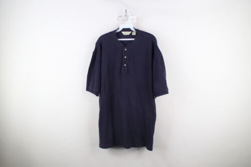 Vtg 90s Eddie Bauer Mens XLT Blank Sun Faded Thermal Waffle Knit Henley T-Shirt