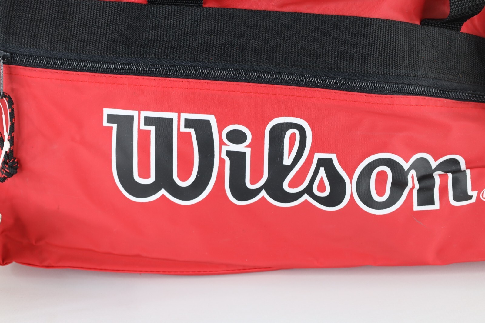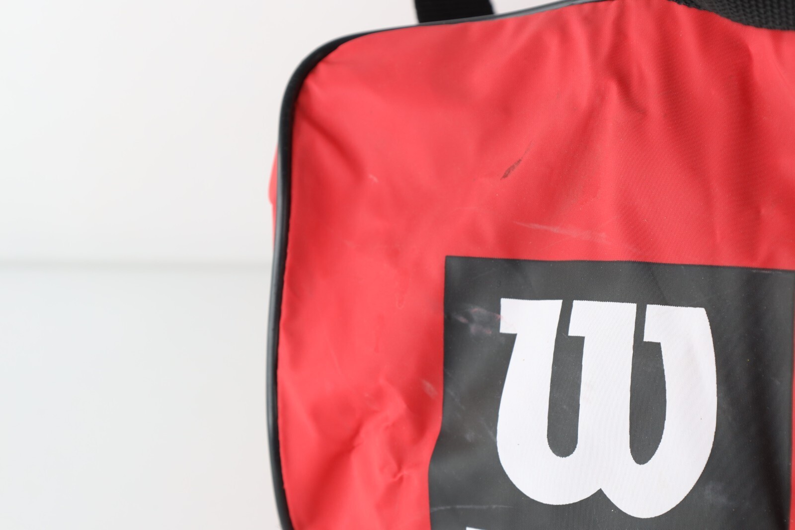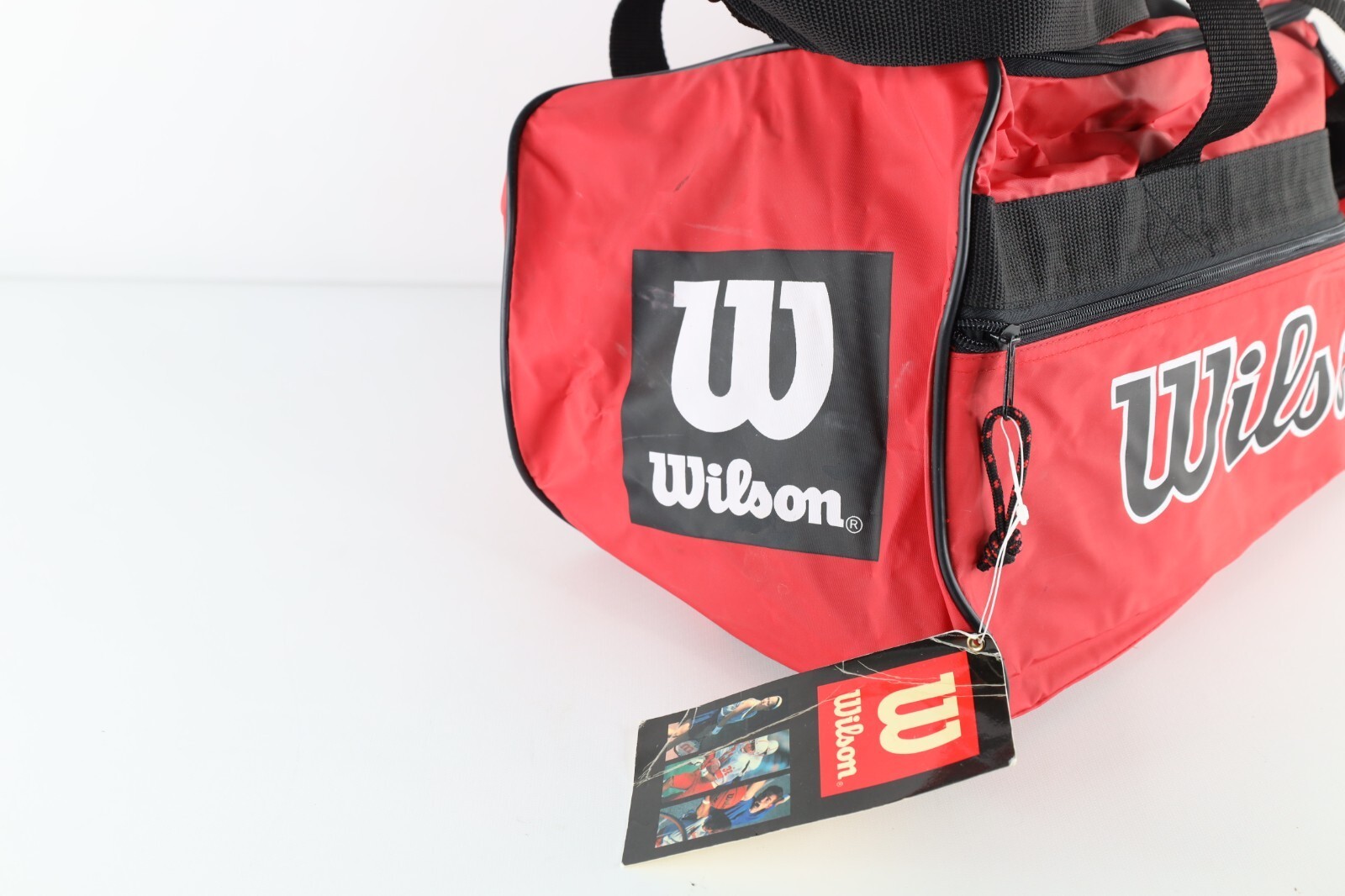 Deadstock Vintage 90s Wilson Spell Out Big Logo Handled Duffel Bag Gym Bag Red