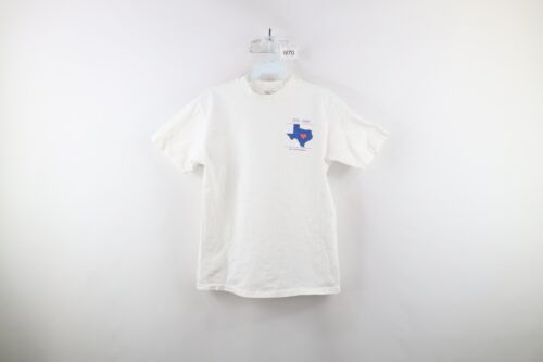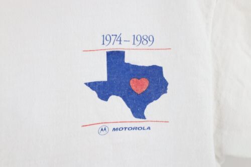 Vintage 80s Mens Medium Spell Out Motorola Texas Short Sleeve T-Shirt White USA