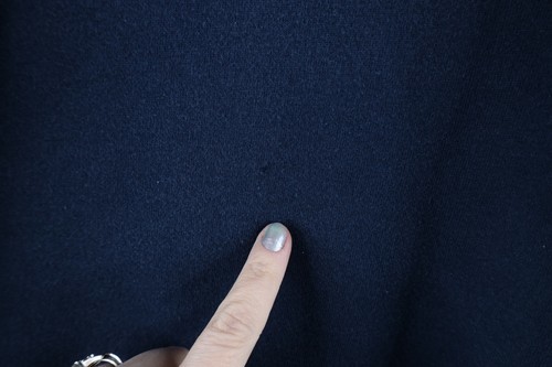 Hole back bottom. Zipper pull missing, still zips. Color faded