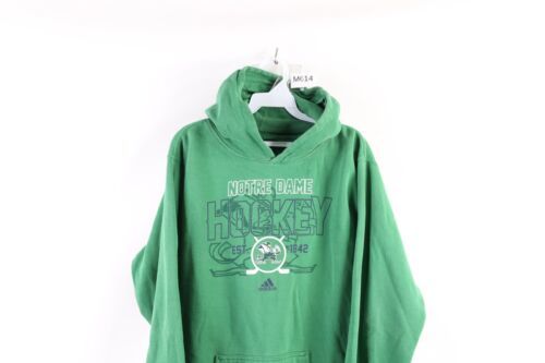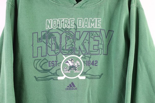 Vintage Adidas Womens Large Faded Spell Out Notre Dame University Hockey Hoodie