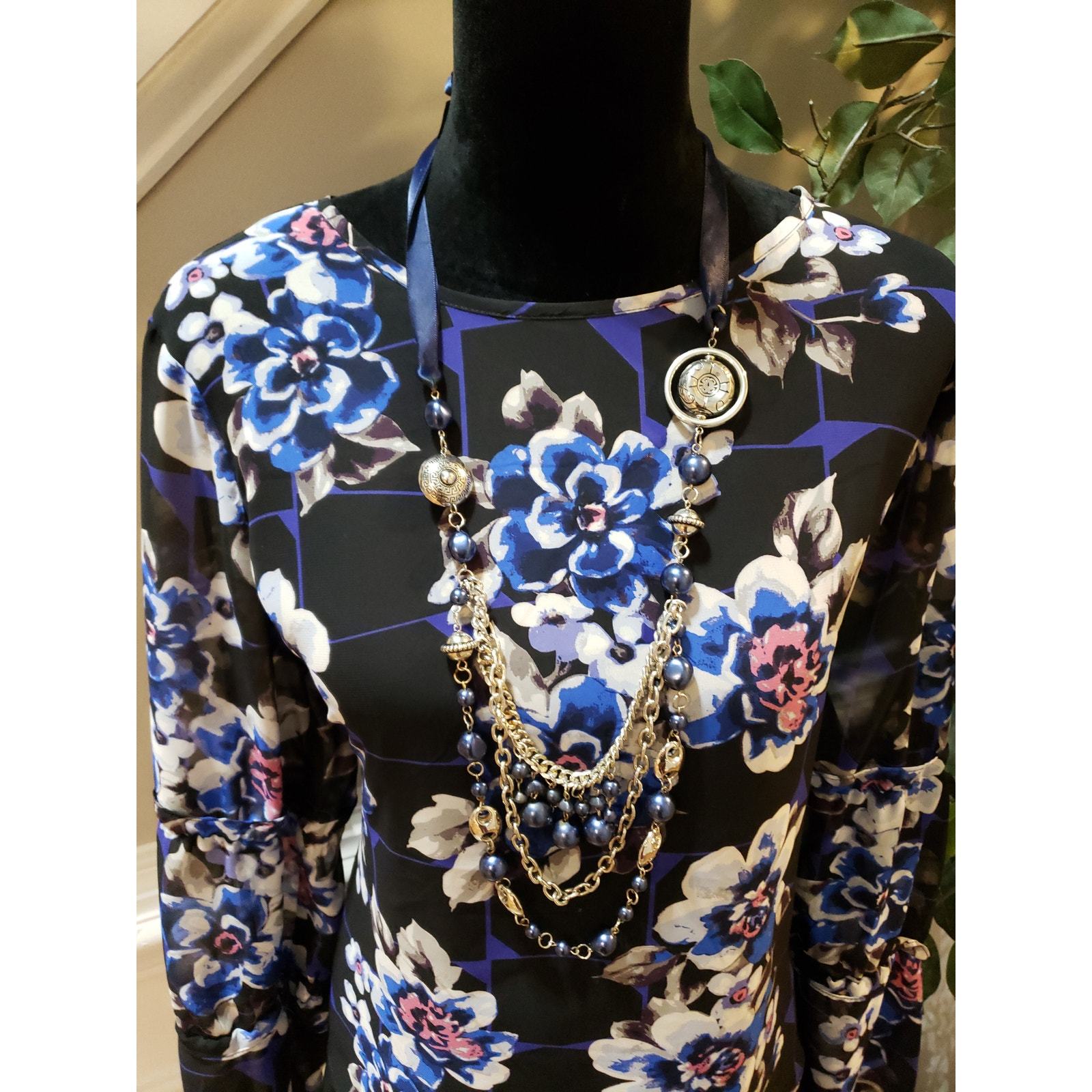 Cato Blouse Womens Large Black Blue Floral and similar items